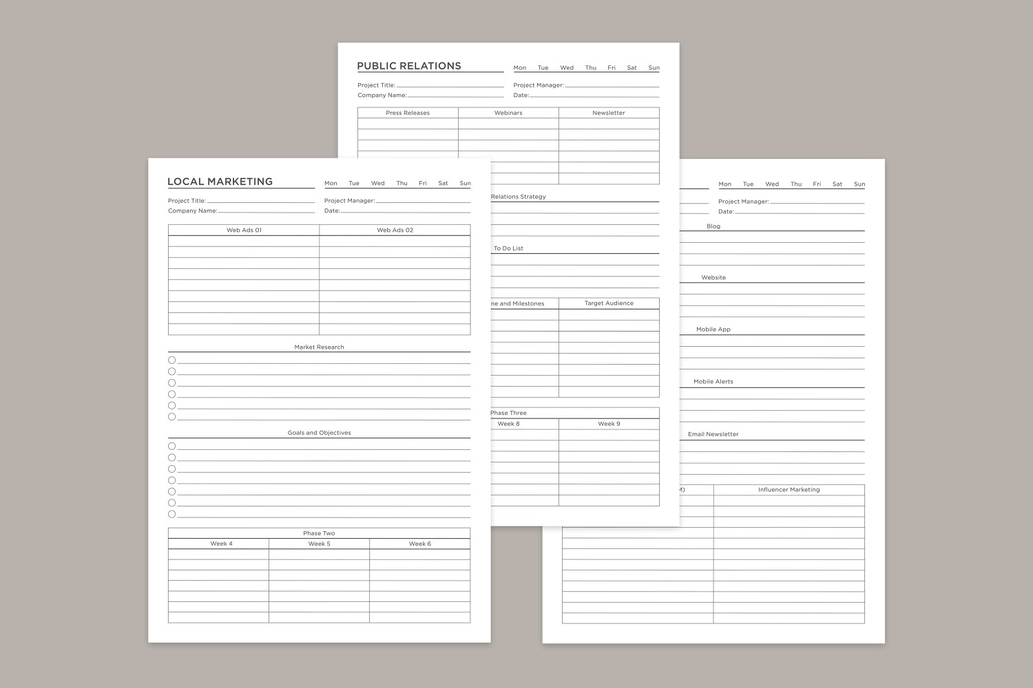 With a clear and structured layout, these Marketing Planners help businesses stay on top of their marketing strategies and deadlines. Whether it's for a small event or a large campaign, these planning sheets provide the tools needed for successful execution. These planning sheets are Perfect for printing and easy to download and print, ensuring immediate usability, they are an essential resource for any marketing team.
