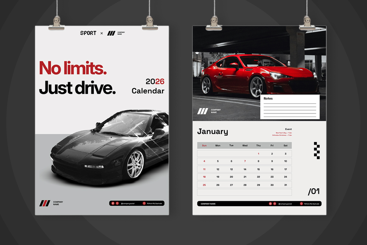 Perfect for companies and designers seeking a refined, functional wall calendar to promote vehicles, campaigns, or dealer events while maintaining a premium brand impression.