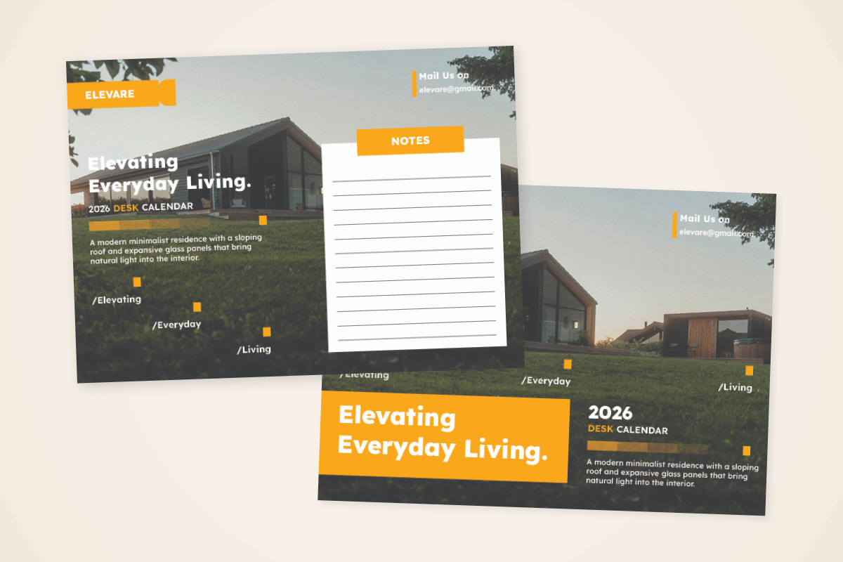Designed for professionals in real estate and architecture, this desk calendar blends modern structure with timeless elegance. Each month features a clean grid system and balanced typography that enhances brand sophistication and readability.