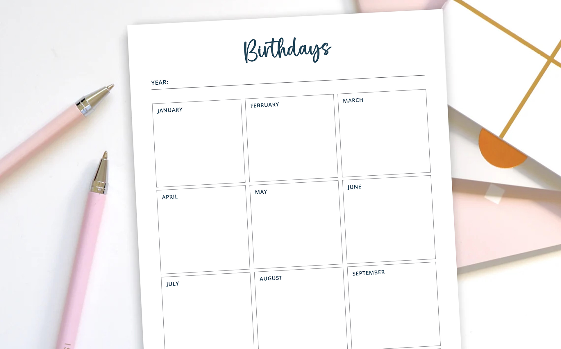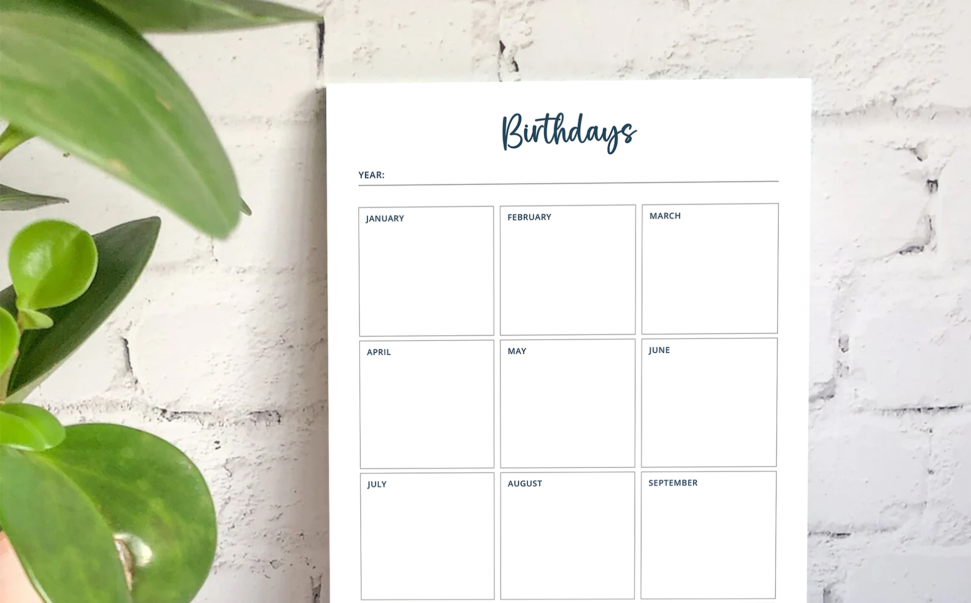 Stay organized and never miss a special day with this professional Birthday Planner Template. Designed with a clean and modern layout, this editable birthday calendar makes it easy to record, track, and manage birthdays throughout the year. Perfect for personal use, families, teachers, and small businesses who want to keep important dates at hand.