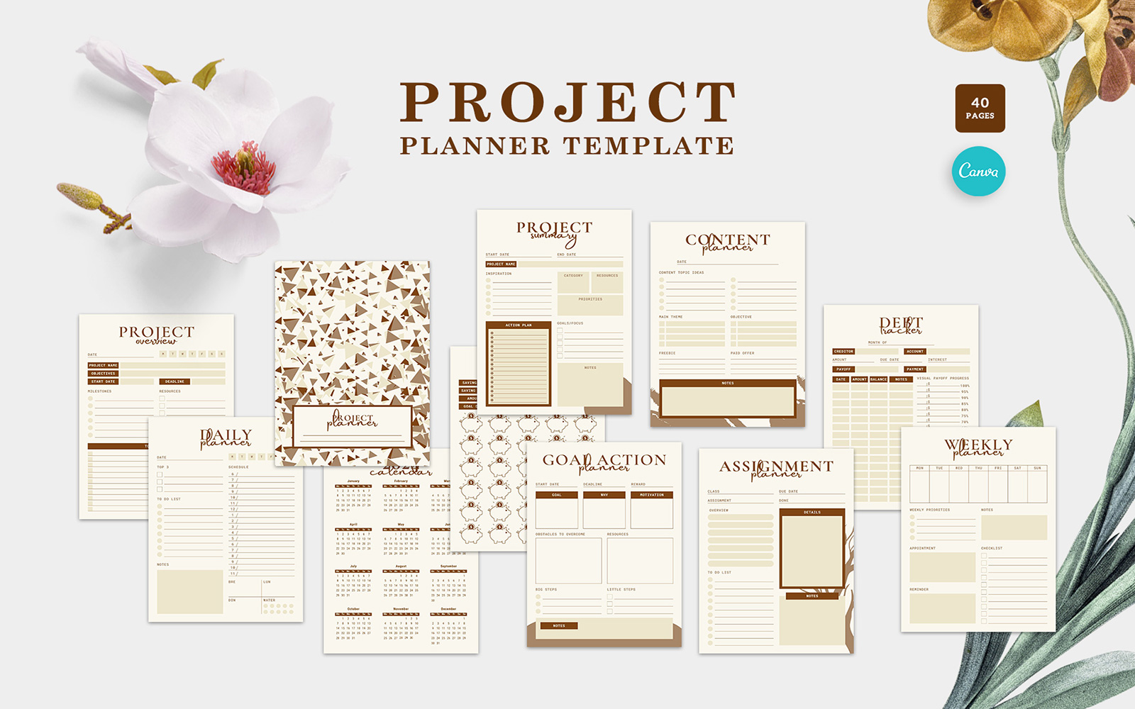 This Editable PROJECT PLANNER TEMPLATE has everything you need to get started! Choose from Canva template pages to quickly and easily create your planner. You can add your own personal touch by changing the colors, fonts, layouts, images, and backgrounds. Everything is customizable with Canva's simple drag and drop interface. When you download you will get a printable pdf doc and one PDF Instructions file for customization CANVA template.