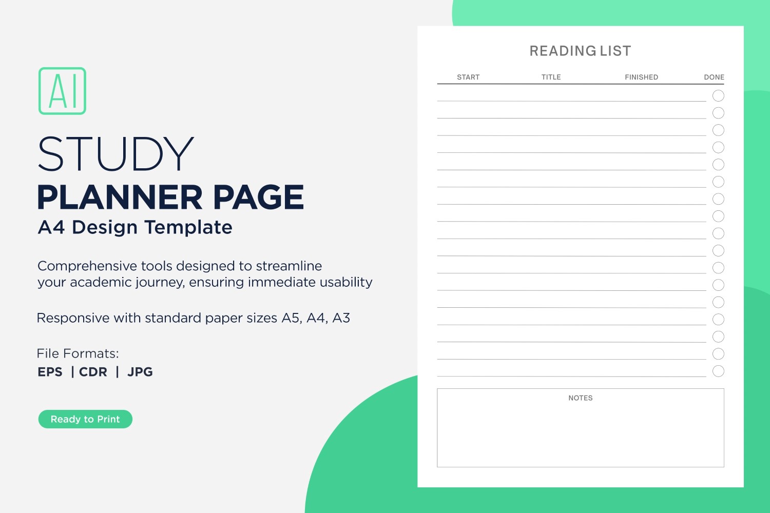 Reading List Study Planning Page, Planner Sheet, Design Template 05