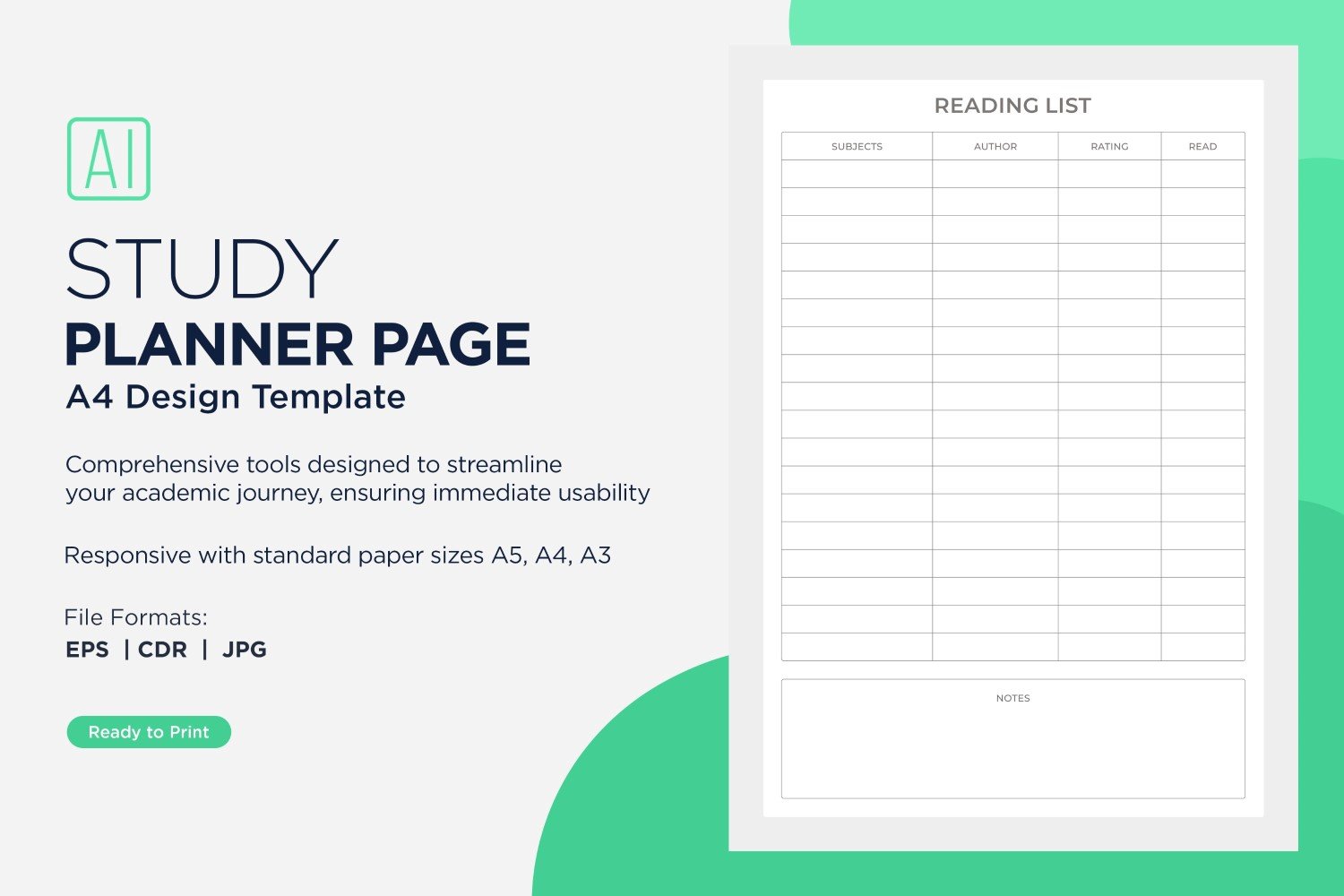 Reading List Study Planning Page, Planner Sheet, Design Template 11
