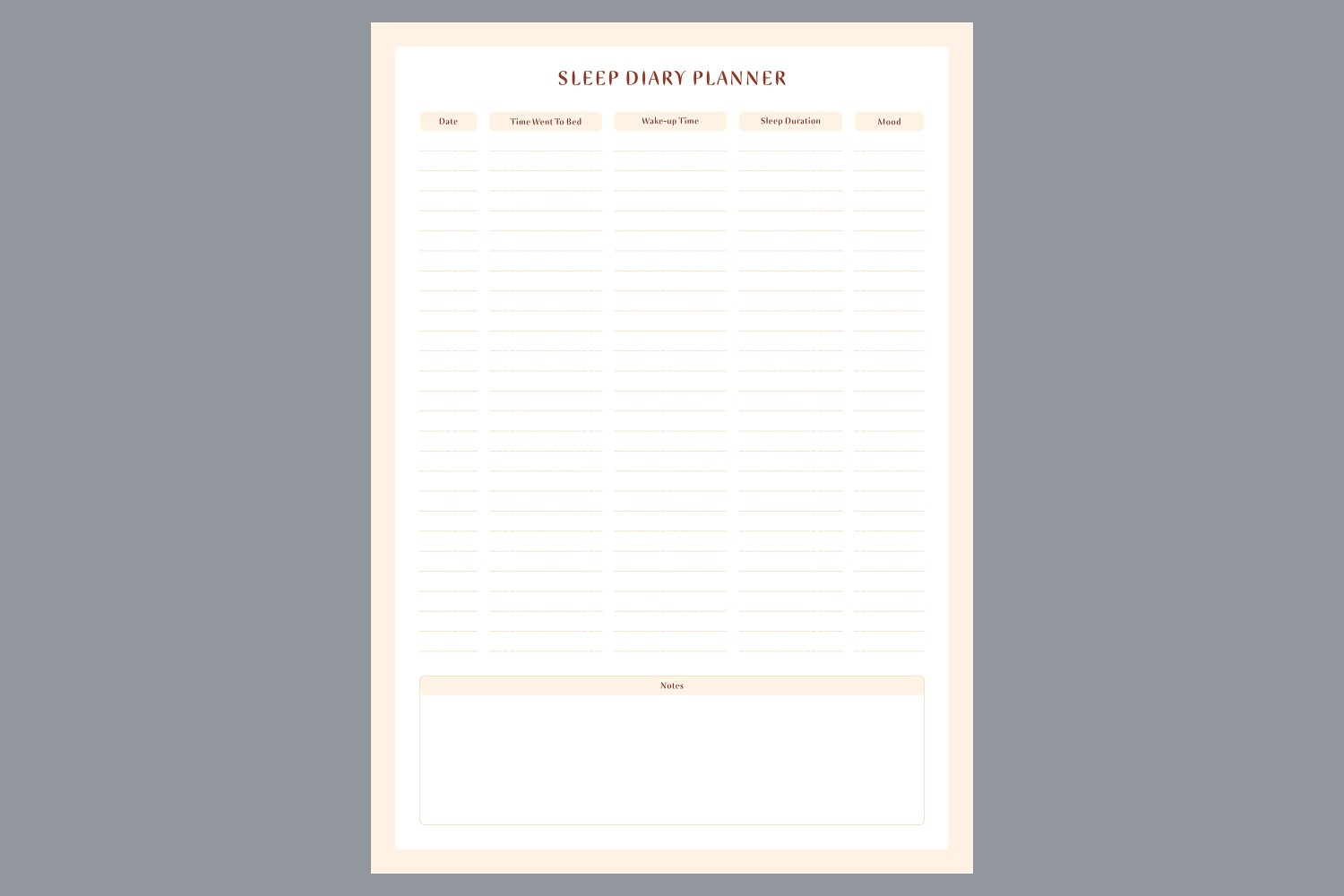Sleep Diary Planner Self Care Planning Pages, Planner Sheets, 54