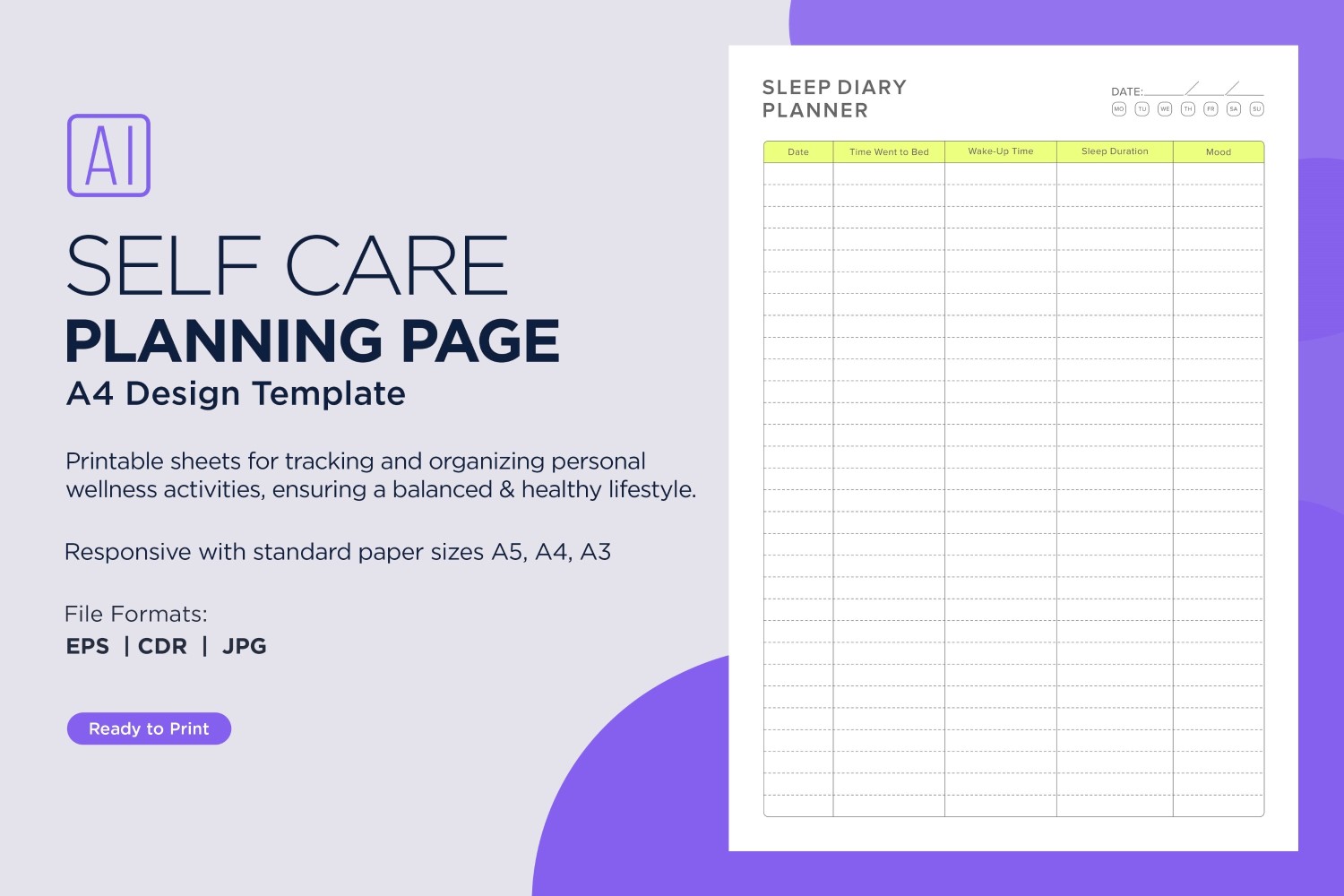 Sleep Diary Planner Self Care Planning Pages, Planner Sheets, 79