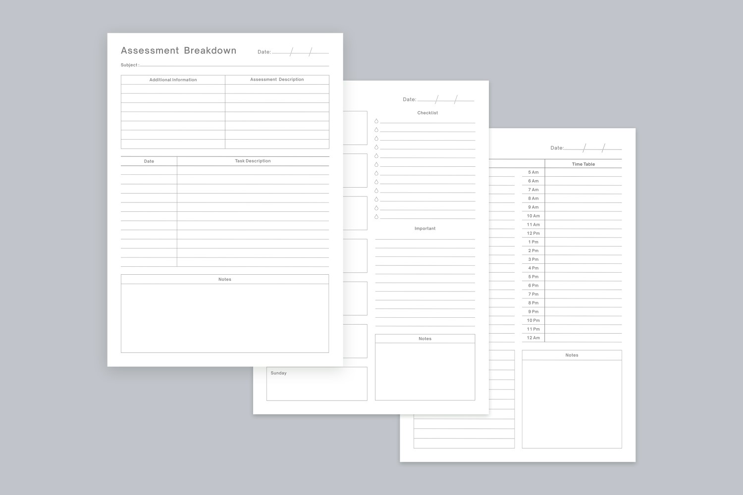 Study Planning, Planning Pages, Planner Sheets, Study Collection, Academic Journey, Planner bundle, planning pages set, Planning Tools, Customizable Sheets, Downloadable Files, Instant Use, EPS Formats, PDF Formats, Reading List, Course Overview, Assessment Schedule, Monthly Plan, Assessment Breakdown, Assessment Planner, Assessment Tracker, Task List, Exam Revision, Project Plan, Group Project, Meeting Notes, Seven Day, Daily Routine, Weekly Routine, Homework Plan, Study Plan, To Do, Additional Notes, Academic Planning, Study Organizer, Study Productivity, Study Management, Efficient Planning, Academic Tools, Study Sheets, Student Planner, Study Planning Templates, Study Goals, Task Management, Revision Plan, Study Routine, Course Planning, Time Management, Study Tracker, Exam Planner, Goal Setting,