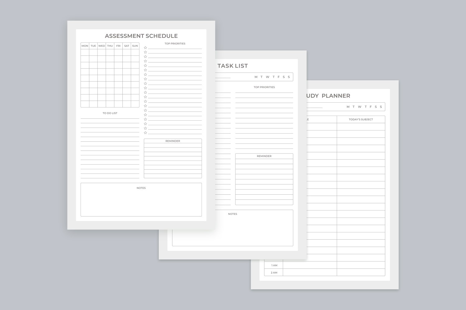 Study Planning, Planning Pages, Planner Sheets, Study Collection, Academic Journey, Planner bundle, planning pages set, Planning Tools, Customizable Sheets, Downloadable Files, Instant Use, EPS Formats, PDF Formats, Reading List, Course Overview, Assessment Schedule, Monthly Plan, Assessment Breakdown, Assessment Planner, Assessment Tracker, Task List, Exam Revision, Project Plan, Group Project, Meeting Notes, Seven Day, Daily Routine, Weekly Routine, Homework Plan, Study Plan, To Do, Additional Notes, Academic Planning, Study Organizer, Study Productivity, Study Management, Efficient Planning, Academic Tools, Study Sheets, Student Planner, Study Planning Templates, Study Goals, Task Management, Revision Plan, Study Routine, Course Planning, Time Management, Study Tracker, Exam Planner, Goal Setting,