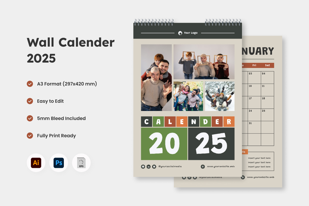A vibrant 2025 wall calendar with playful visuals, ideal for adding a touch of color and creativity to your space while keeping your plans on track.