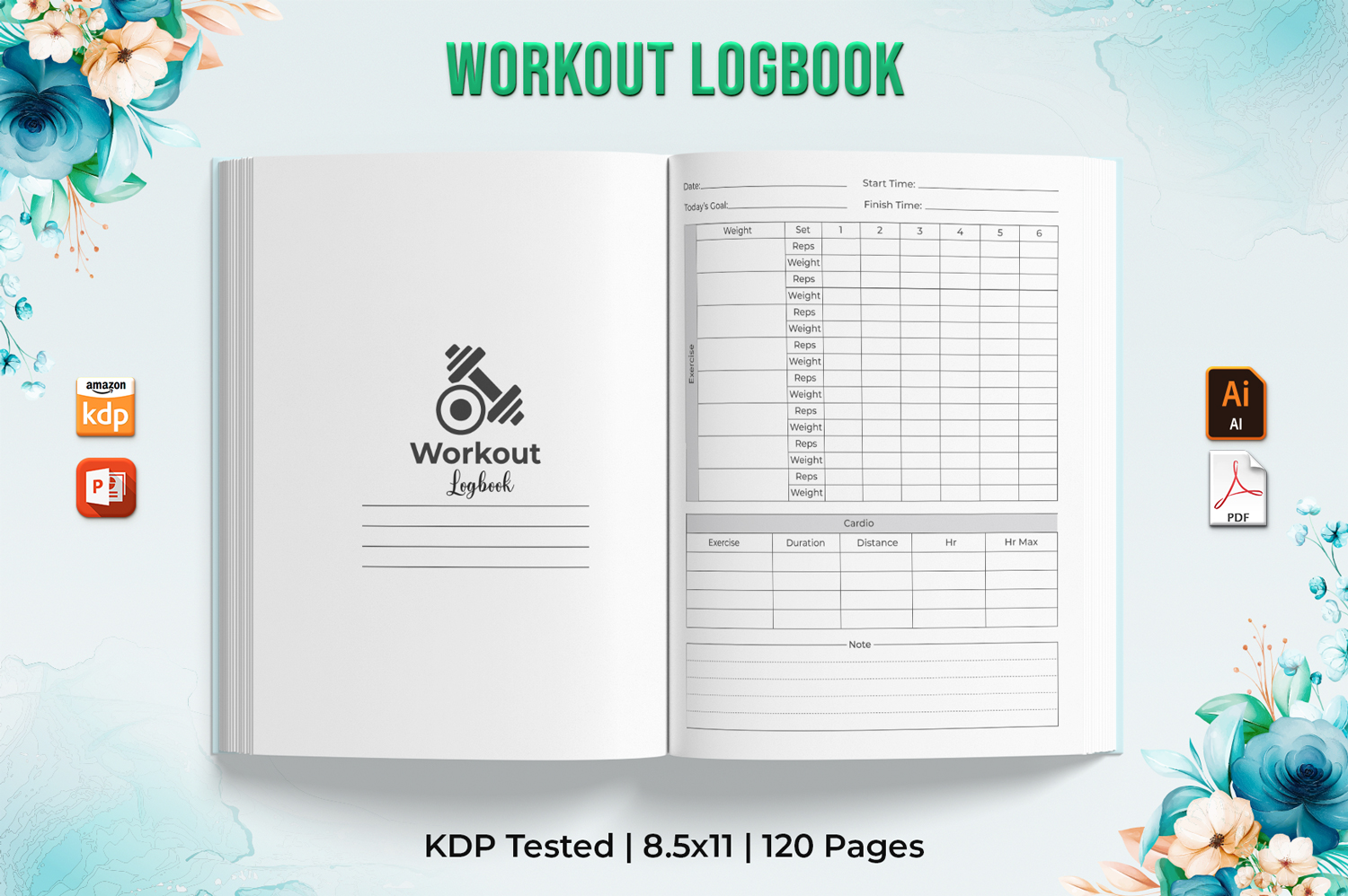 Editable "Workout Log Book KDP Interior" Download instantly AI with PDF formats ready to upload on KDP
