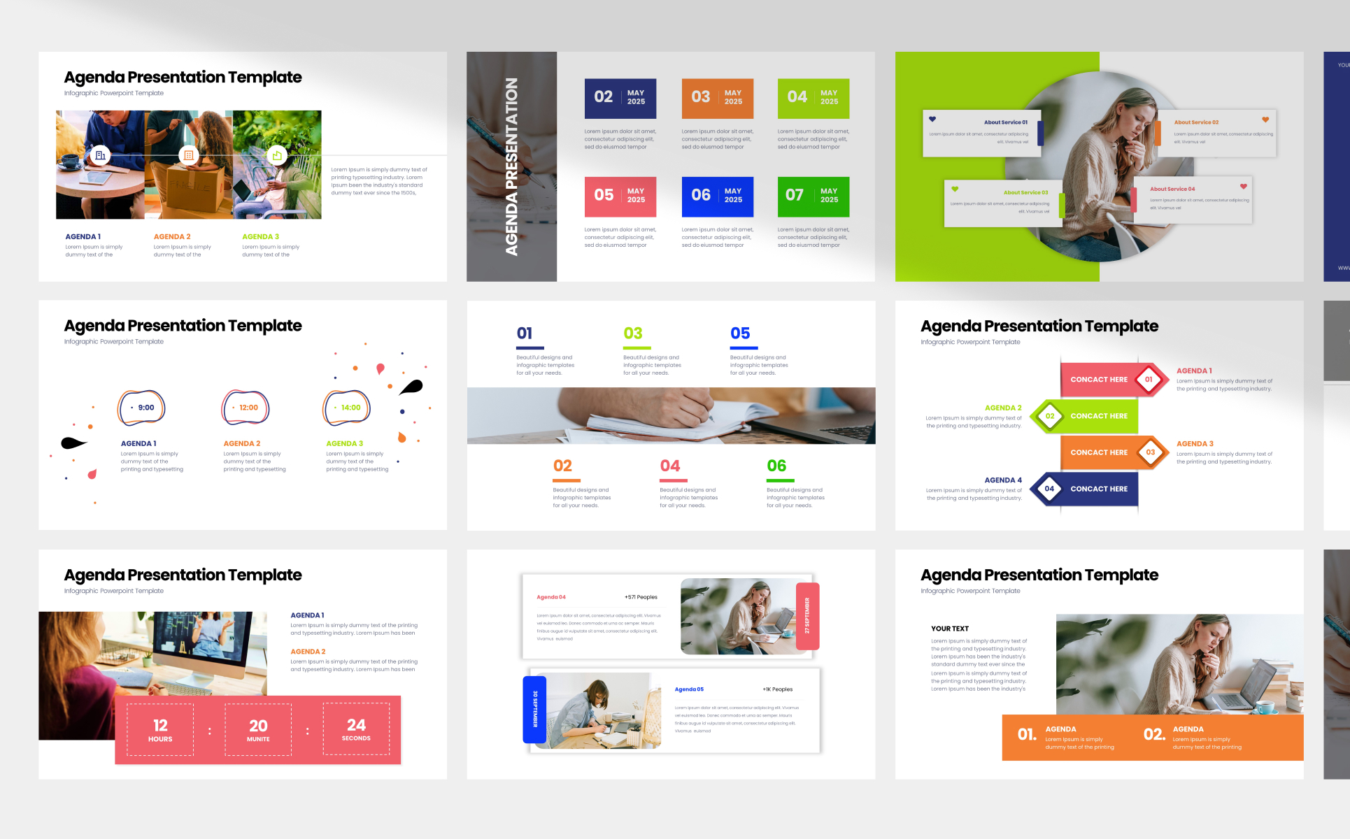 Agenda - Infographic Presentation Template is an asset to help you make the business illustration in the media presentation easier. With a variety of modern design choices, making your presentation structure easier to understand and stylist.