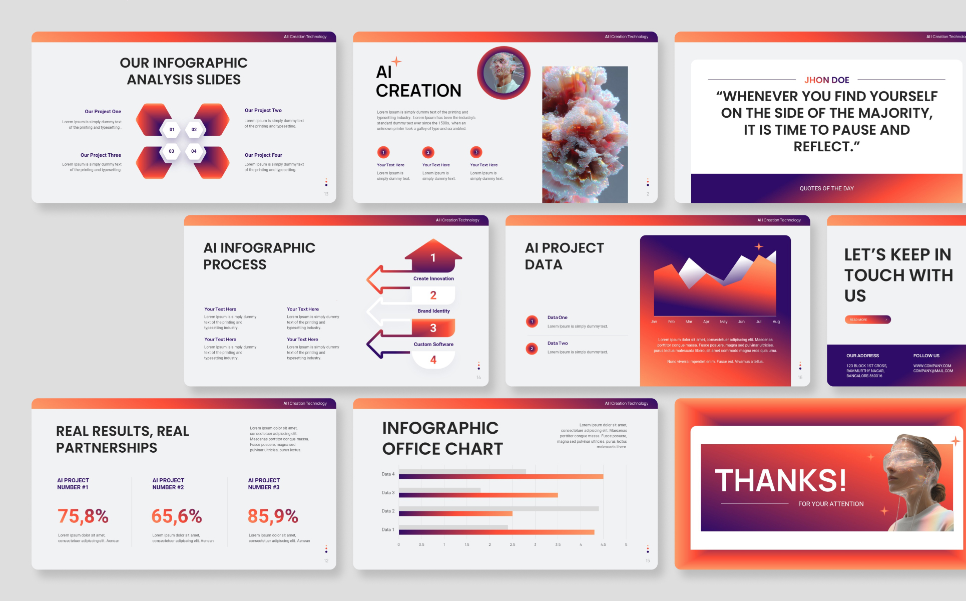 AI project presentations, innovation pitches, startup funding decks, product demos, technology showcases, and data-driven reports