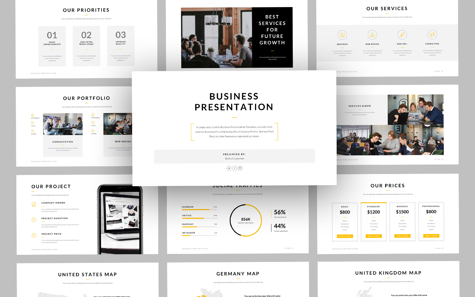 BizDoe Business PowerPoint Template Flat, Clean, Minimalist, Elegant and Flexible Presentation Template.