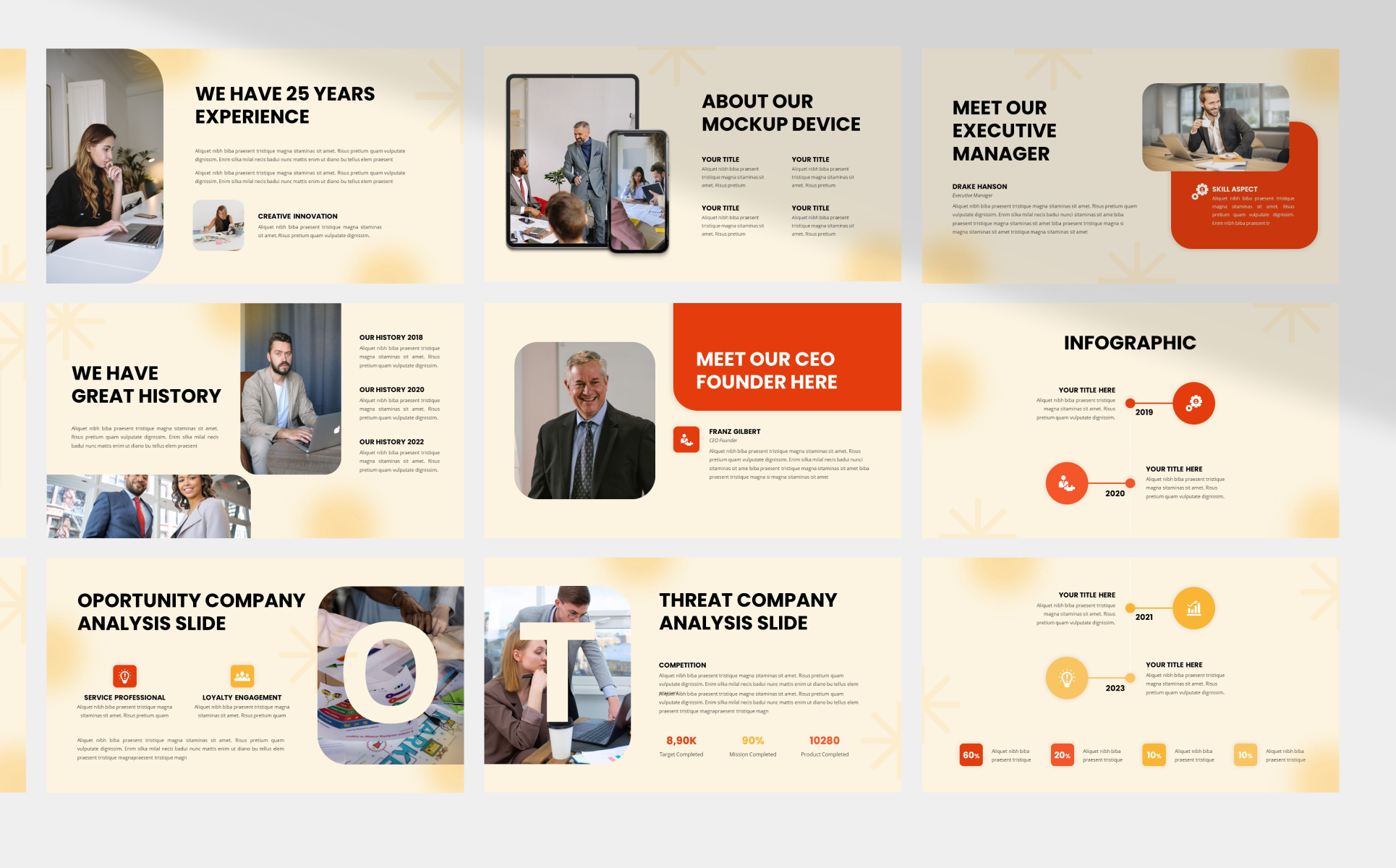Easy to set and change colors according to your taste are the main features of this template presentation, because all elements are vector.