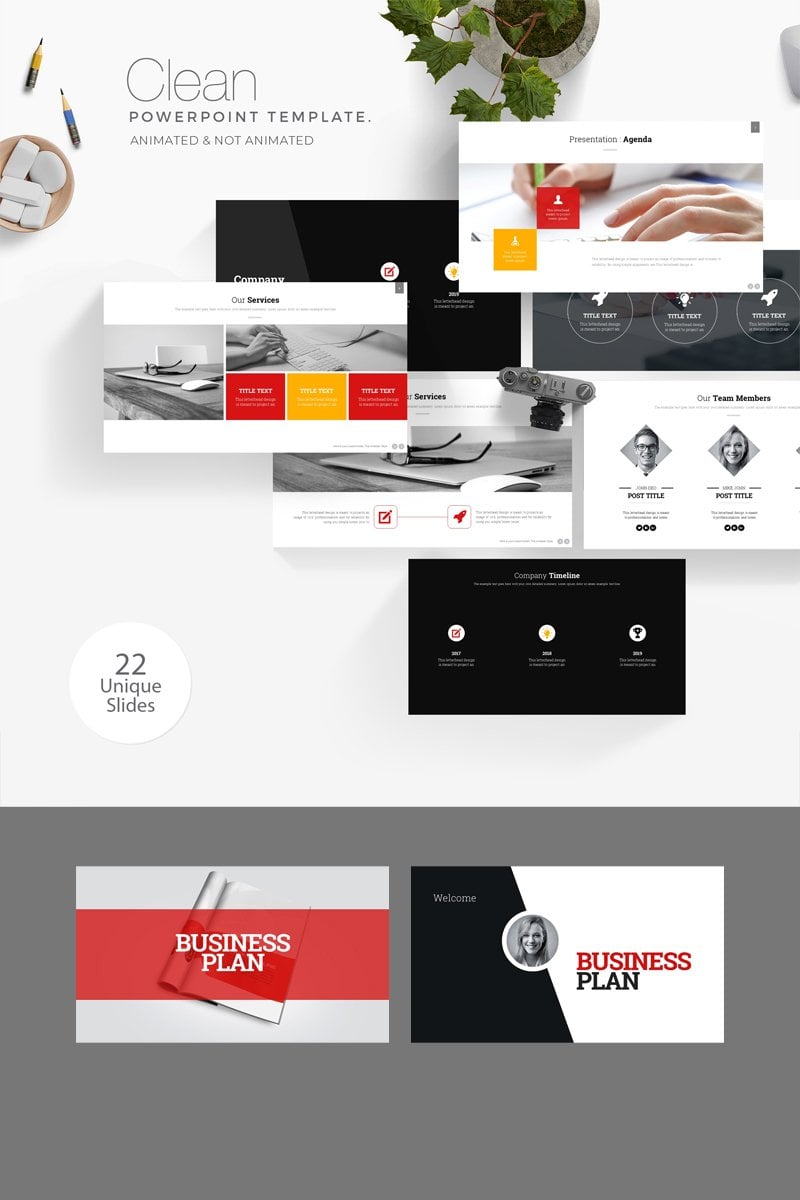 Clean, modern and simple Powerpoint Template. This clean and creative layout gives you many possibilities of creativity. You can edit everything very easy in your Powerpoint Software. With one click resizable and change colors in vector icons and easy drag and drop photos in shape.