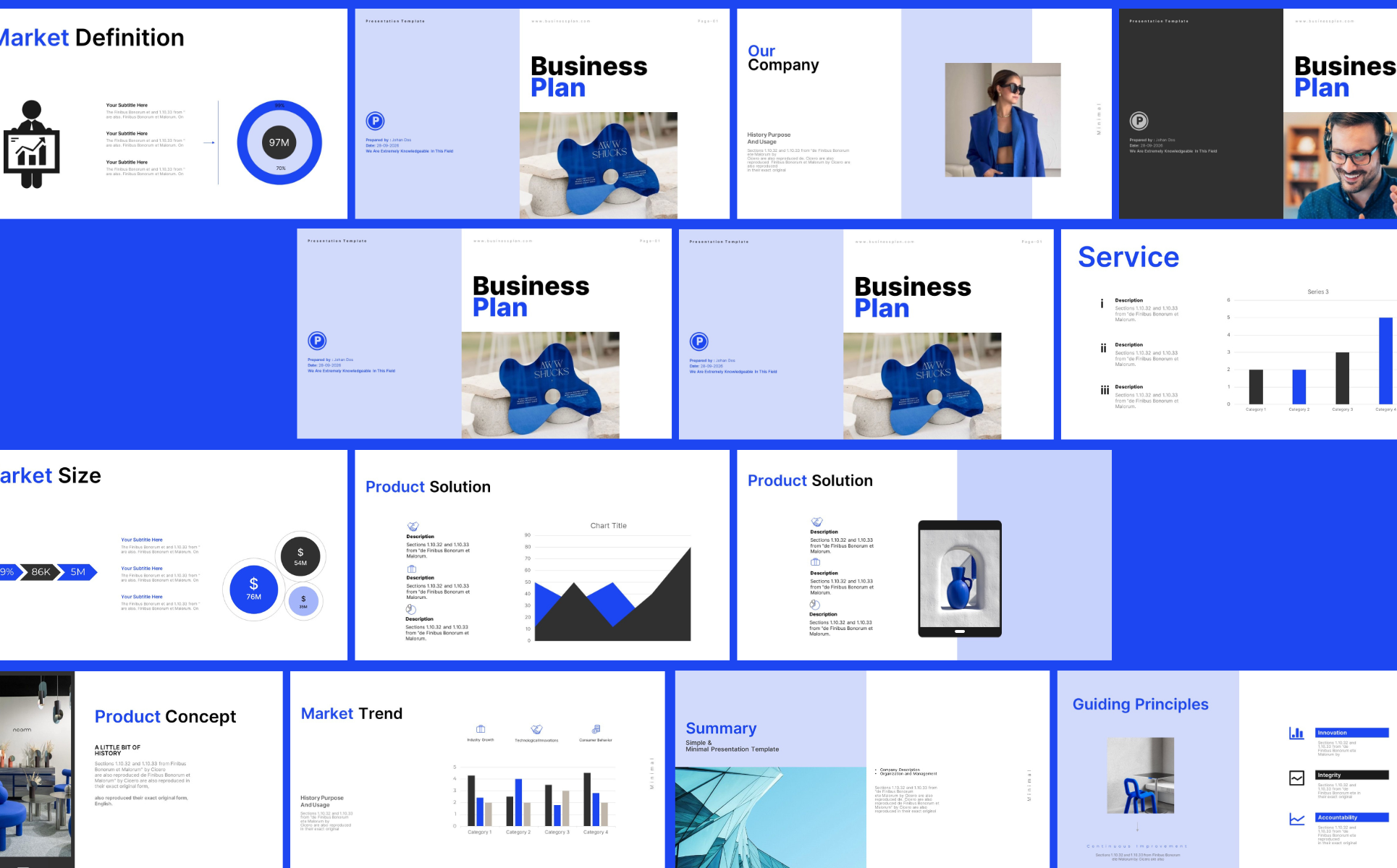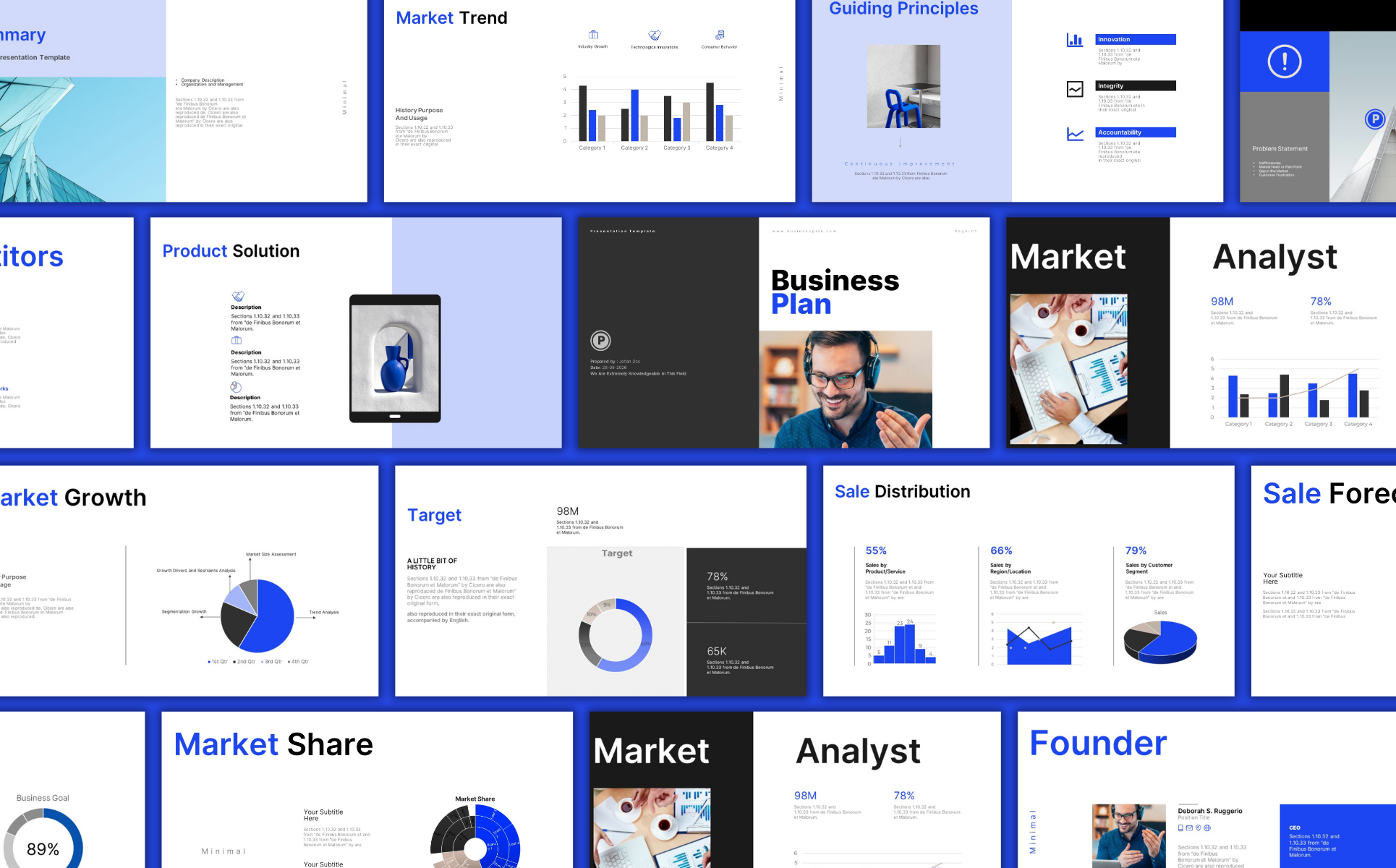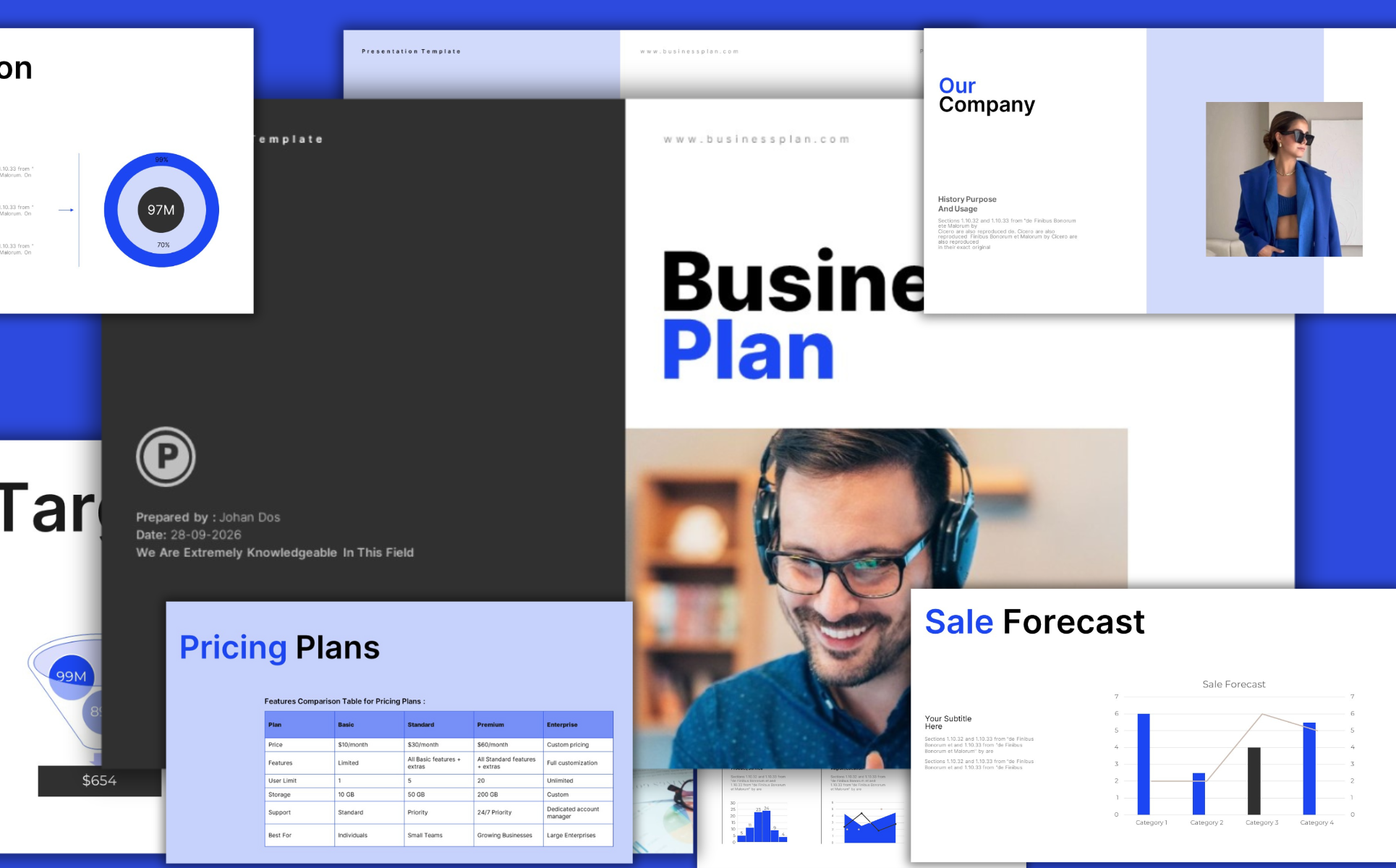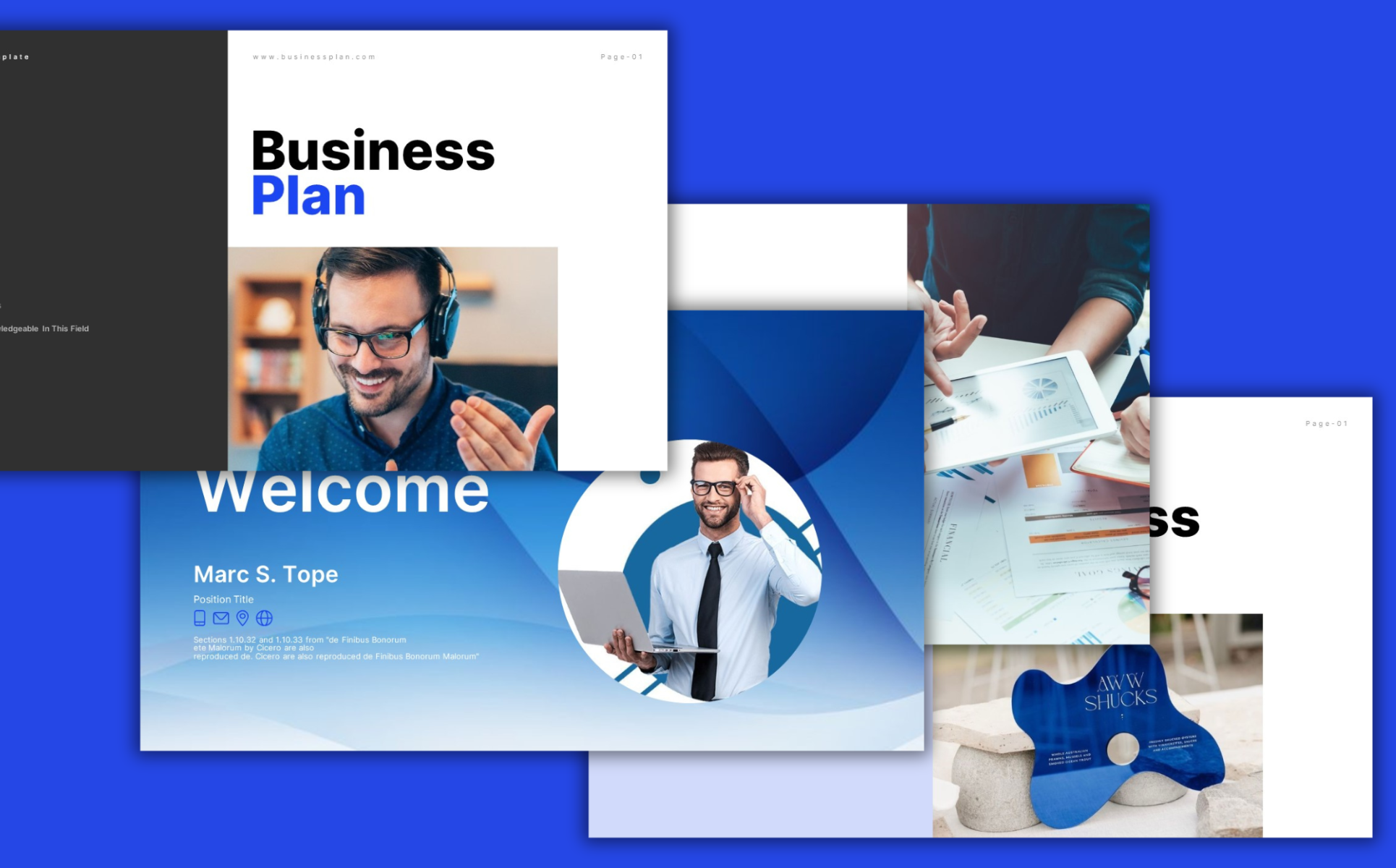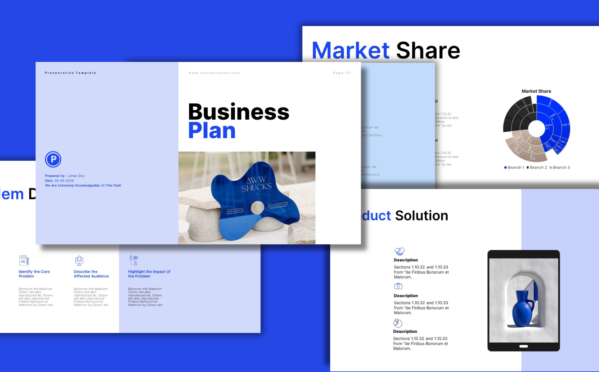 Use the Business Plan Presentation Template to showcase your work in a polished and orderly manner. This is a straightforward, modern,