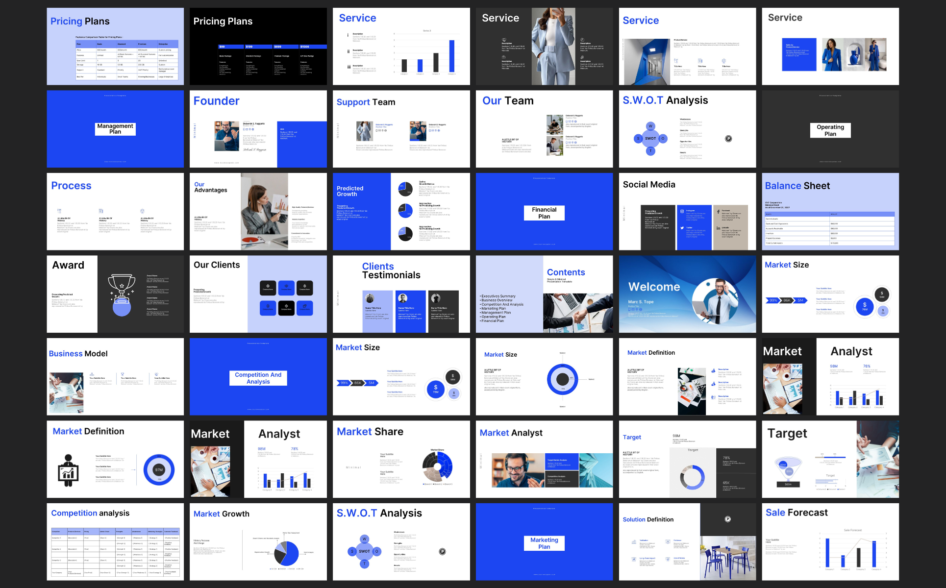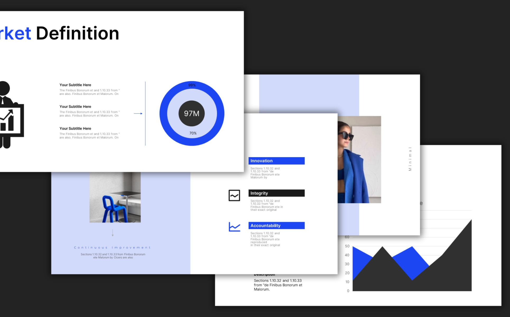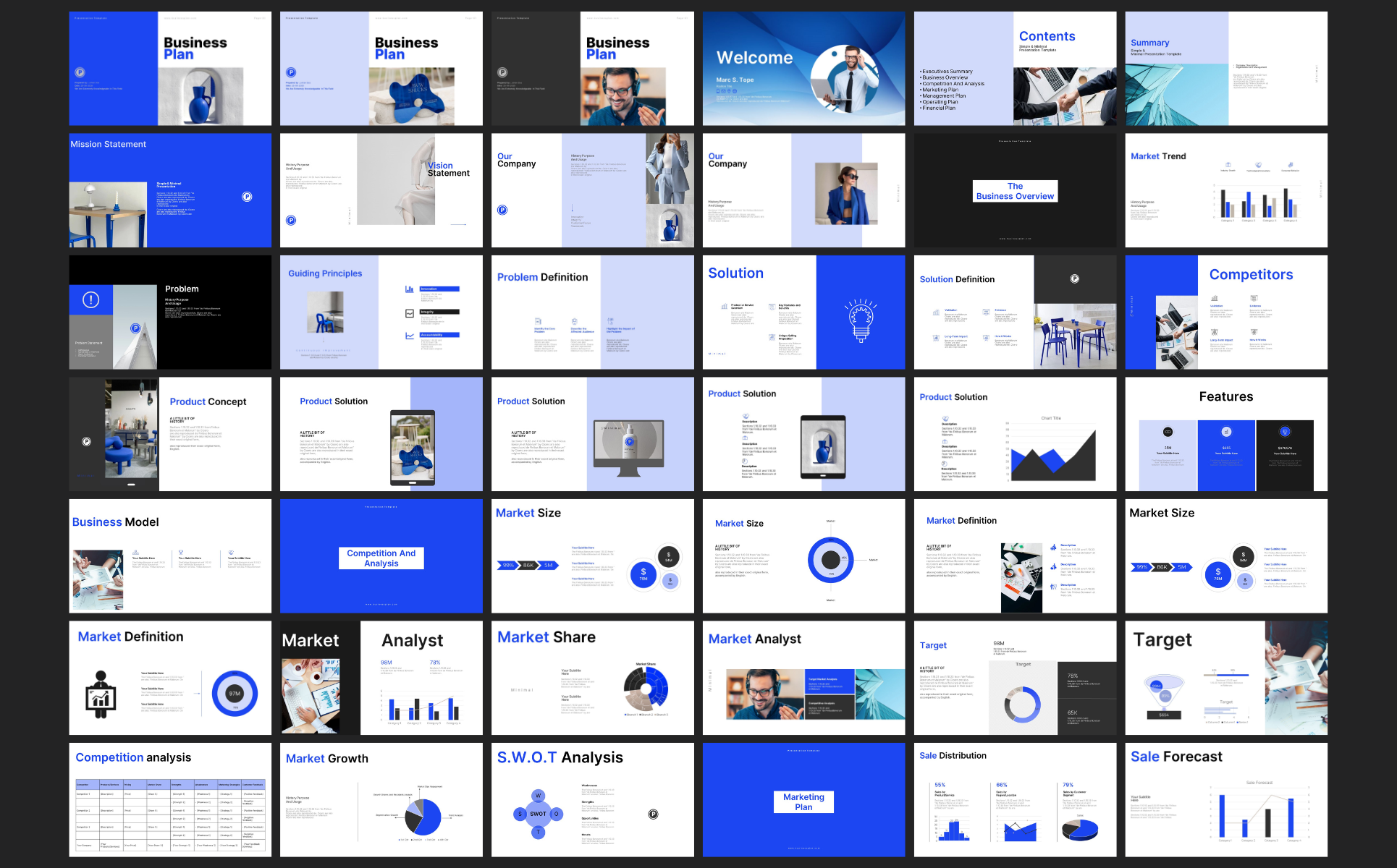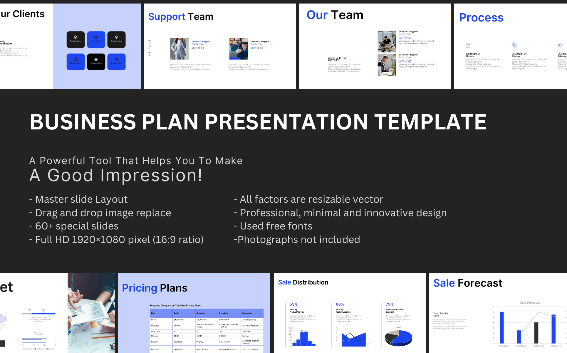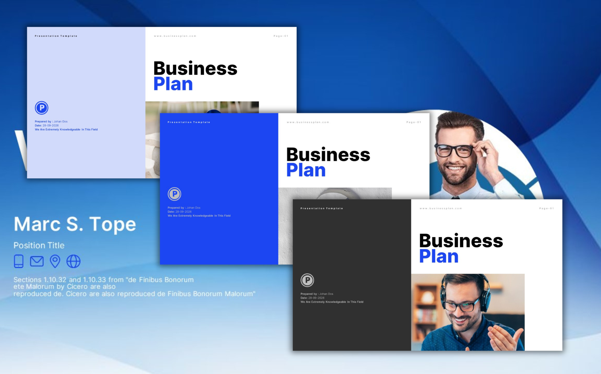 Use the Business Plan Presentation Template to showcase your work in a polished and orderly manner. This is a straightforward, modern,