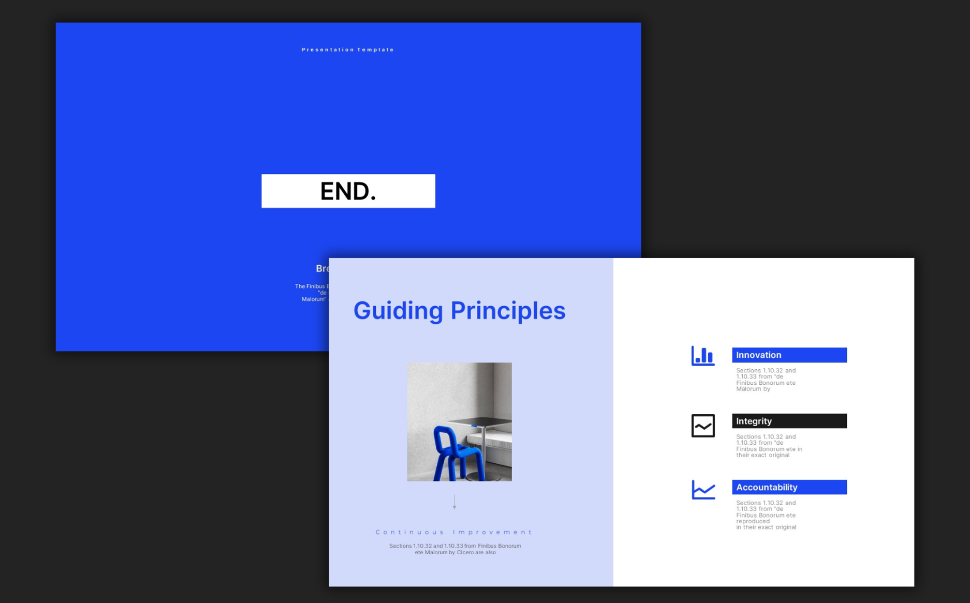 The basic template for a presentation. Each slide had a very distinctive design. Each element is easily editable, and you can make changes without problems.