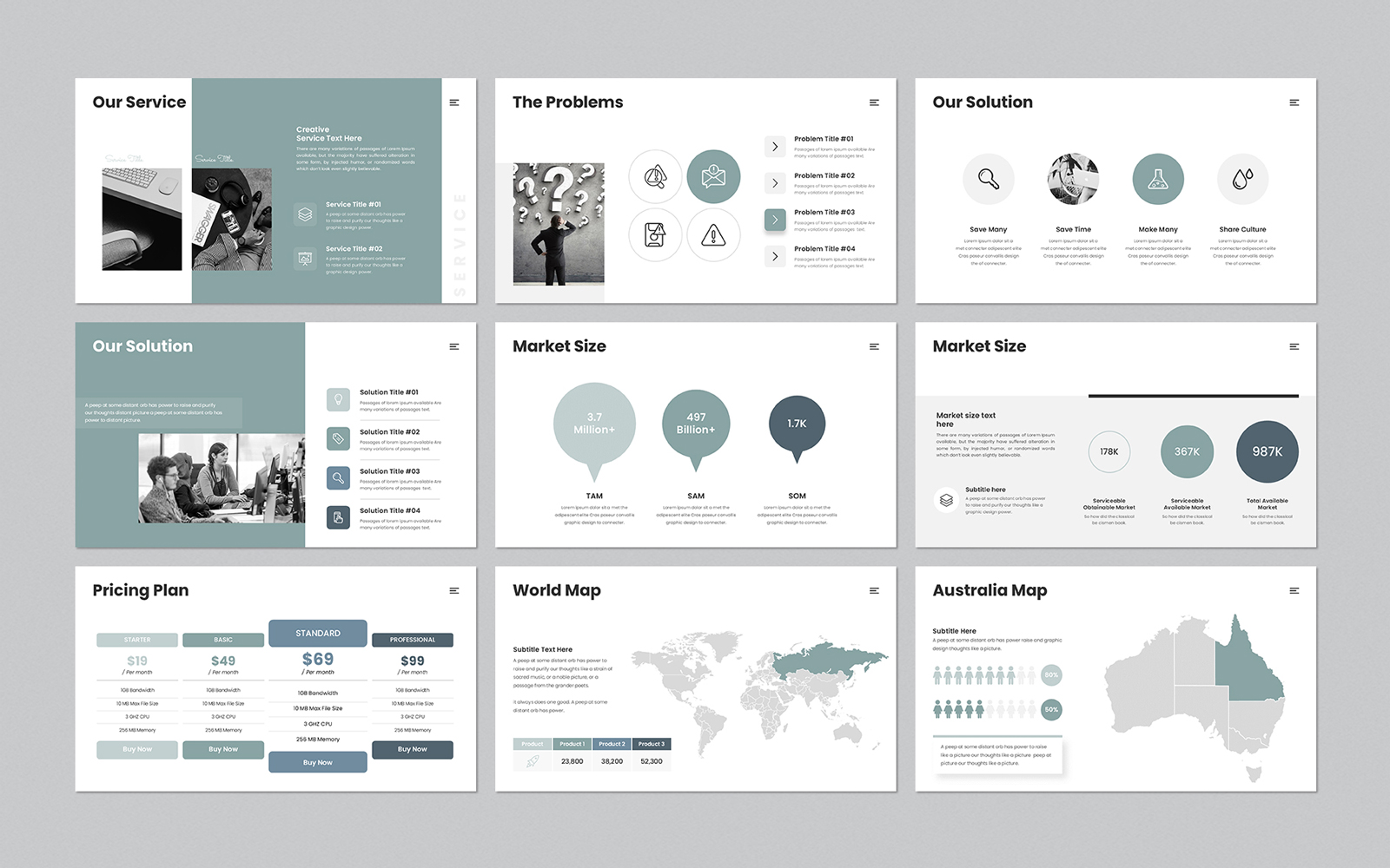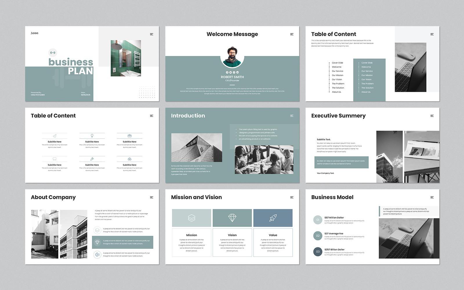 Present your works in a professional and clean way with business plan presentation template. This is a simple, contemporary but powerful design that includes creative photo layouts, infographics, tables, vector icons, diagrams and tons of great features to show your work and your company profile on another level.