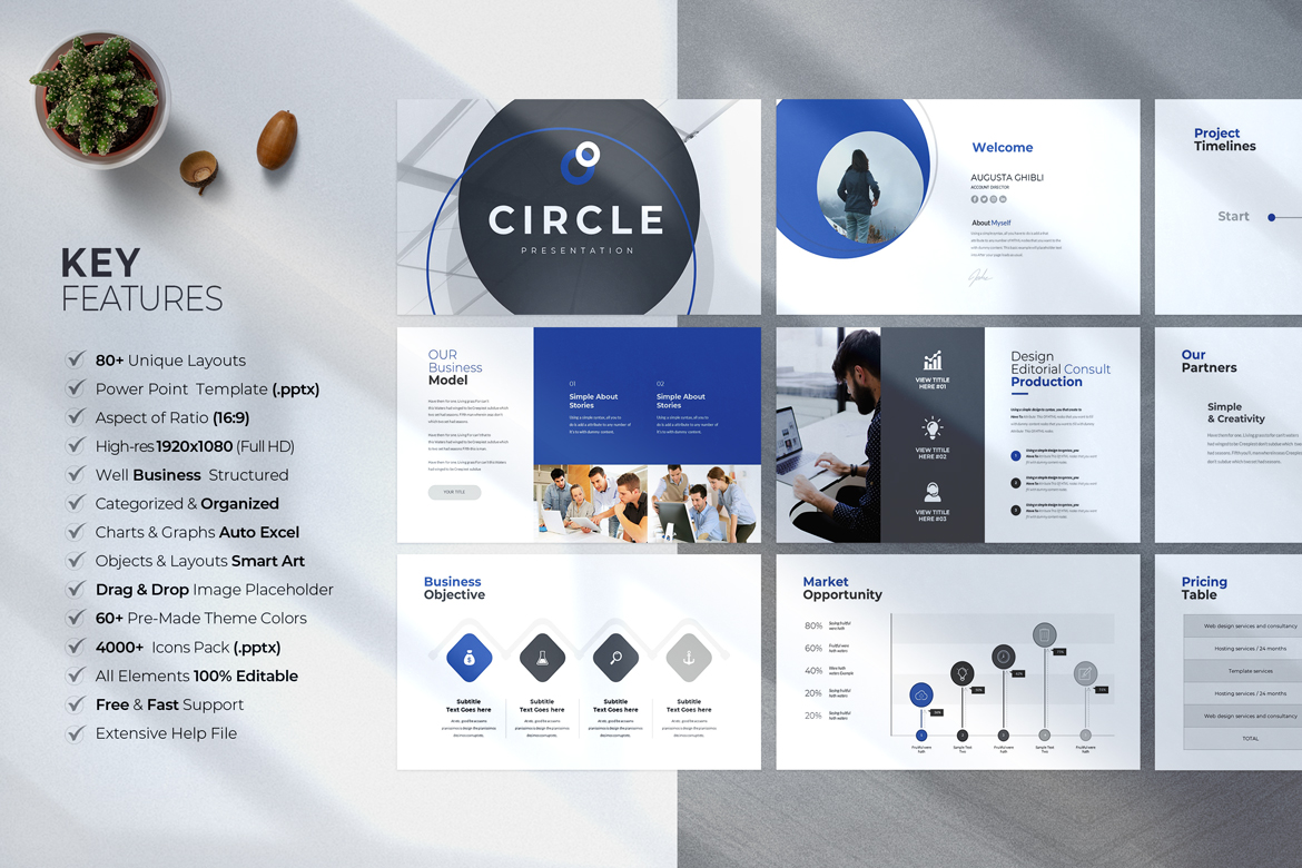 Circle-The Creative Presentation Template created very carefully for use any kinds of Business. Clean, Creative, Modern & Corporate Presentation Template. Based on real business topics. All Elements r’e 100% Editable. Aspect Ratio 16:9