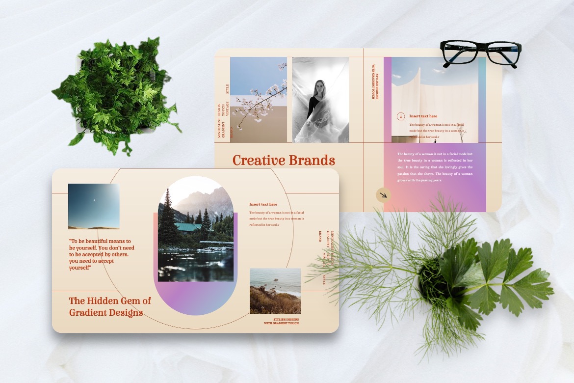 This Presentation Template can be used for any variety of purposes, such as: Your own portfolio with minimal & creative style, Graphic Design Agency, Company, Agency and also can be used for a Business Portfolio. This Presentation Template contains Modern, Elegant, Creative, Professional and Unique layouts.