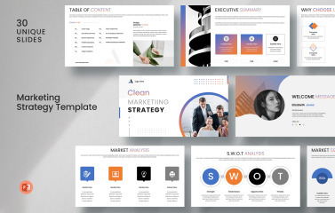 This Clean Marketing Strategy Template contains 30 useful slides for business plans and processes such as company introduction, market analysis, products and services, competitive strategy, marketing plan, sales method, investing, organization and management team, social media marketing, and many more