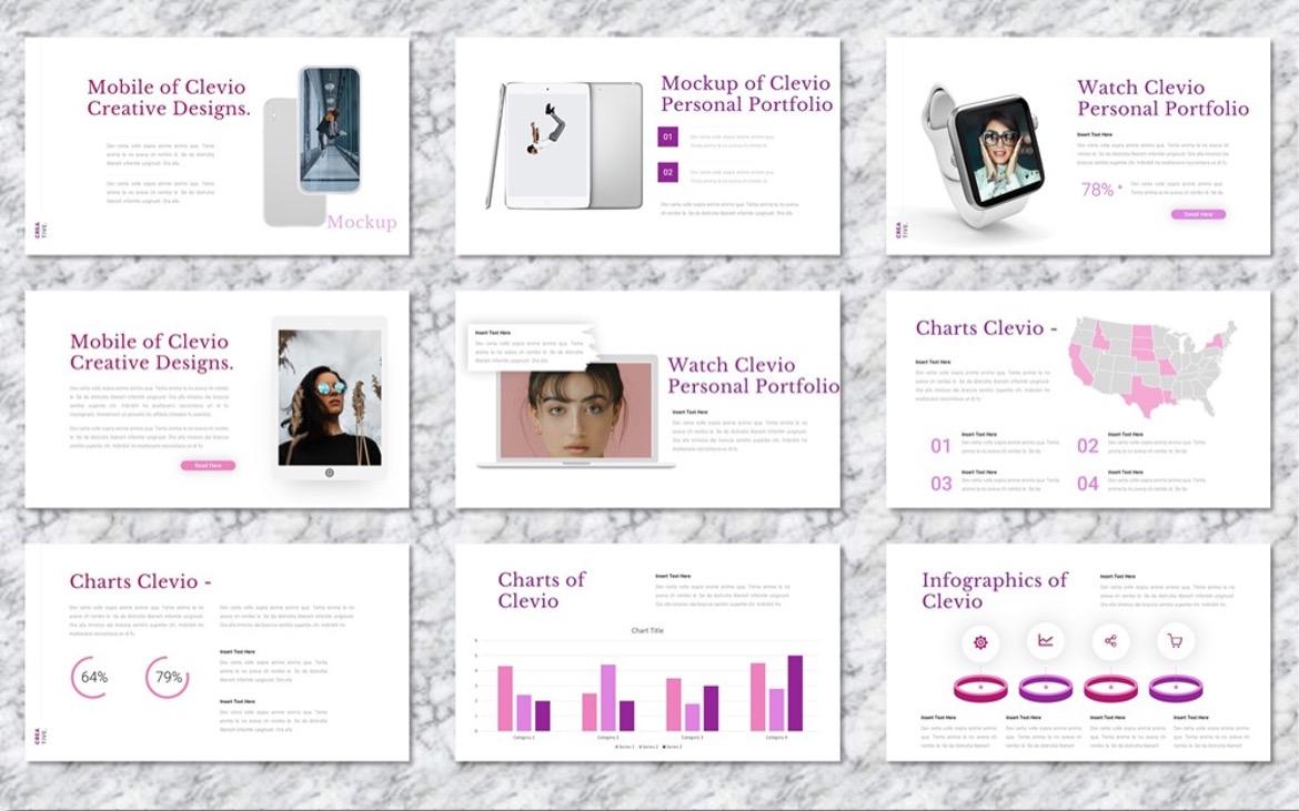This Presentation Template contains Modern, Elegant, Creative, Professional and Unique layouts.