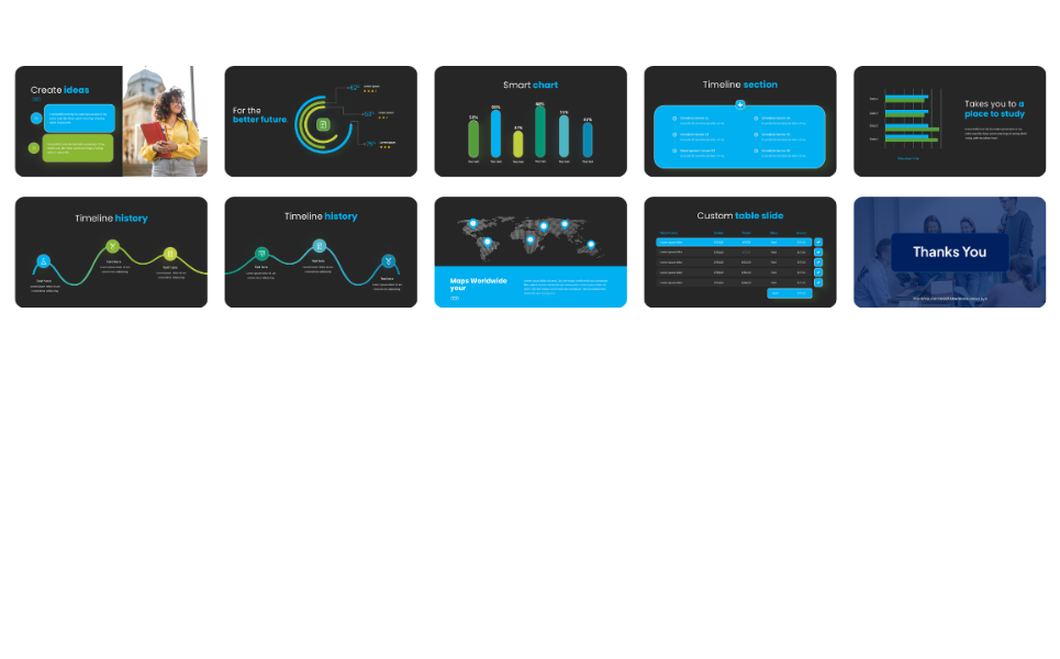 - Over 30+ Unique Slides Each