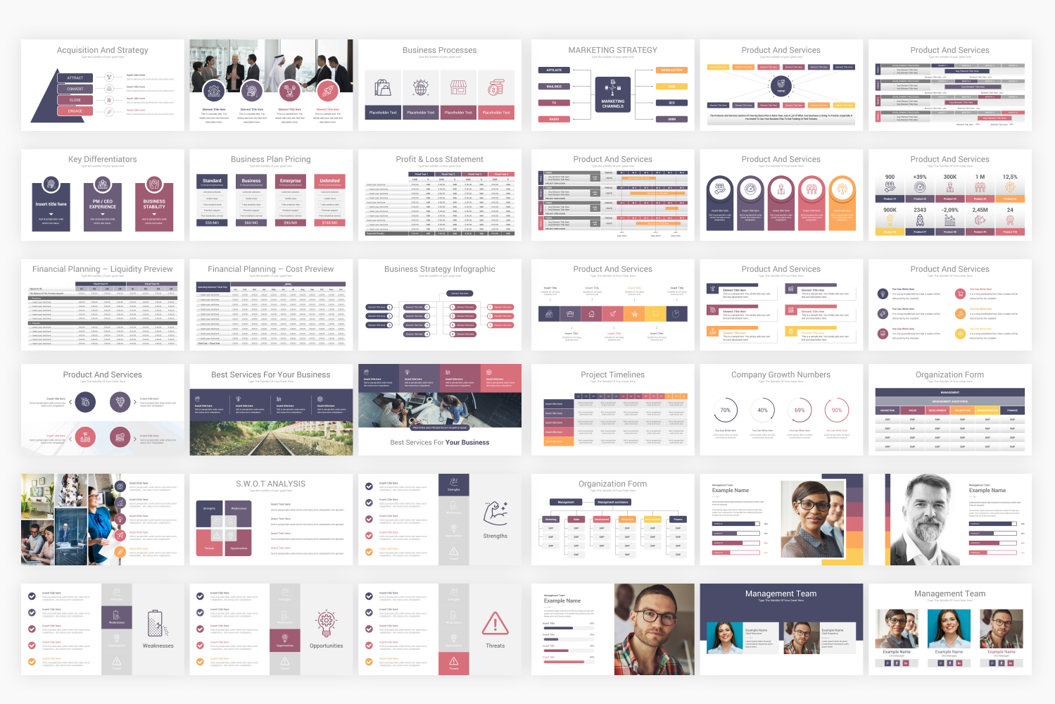 The Company Profile PowerPoint Template Solutions reduces your work by supplying templates designed with busy entrepreneurs in mind. With 207 fully editable slides, the Pitch Deck Bundle provides you with the template you need to deliver a strong pitch. Slides feature charts, graphs, customizable infographics, maps, SWOT analysis, mockups, team introduction, Images layouts, and more. and over 6500+ professional icons included.you can flawlessly move, resize or change colors throughout your presentation slides. Plue 90 color themes are included in this pack, which you can with One Click change the colors of all shapes, Icons, fonts and auto recolored. or you can make your own colors theme and apply it on all slides at once.