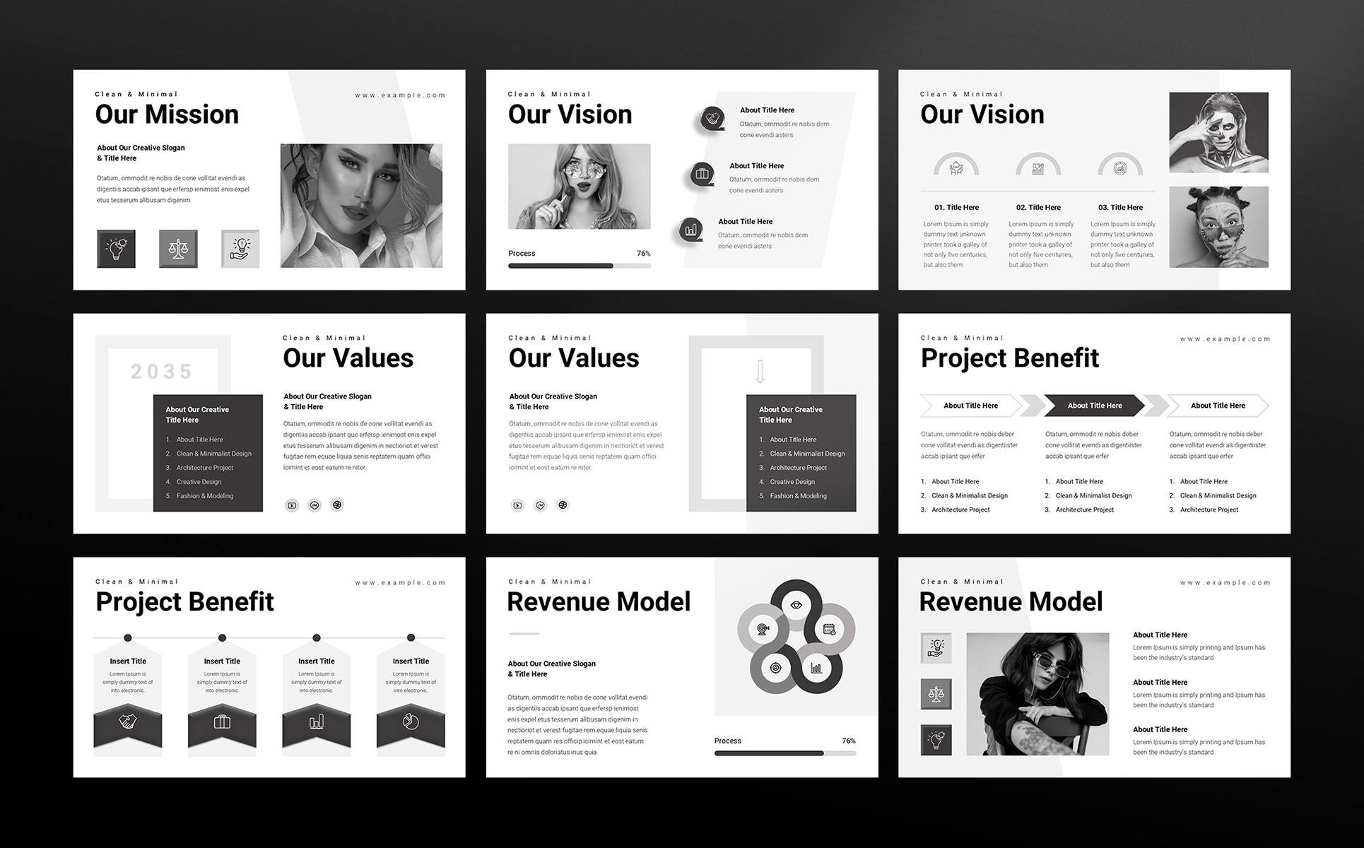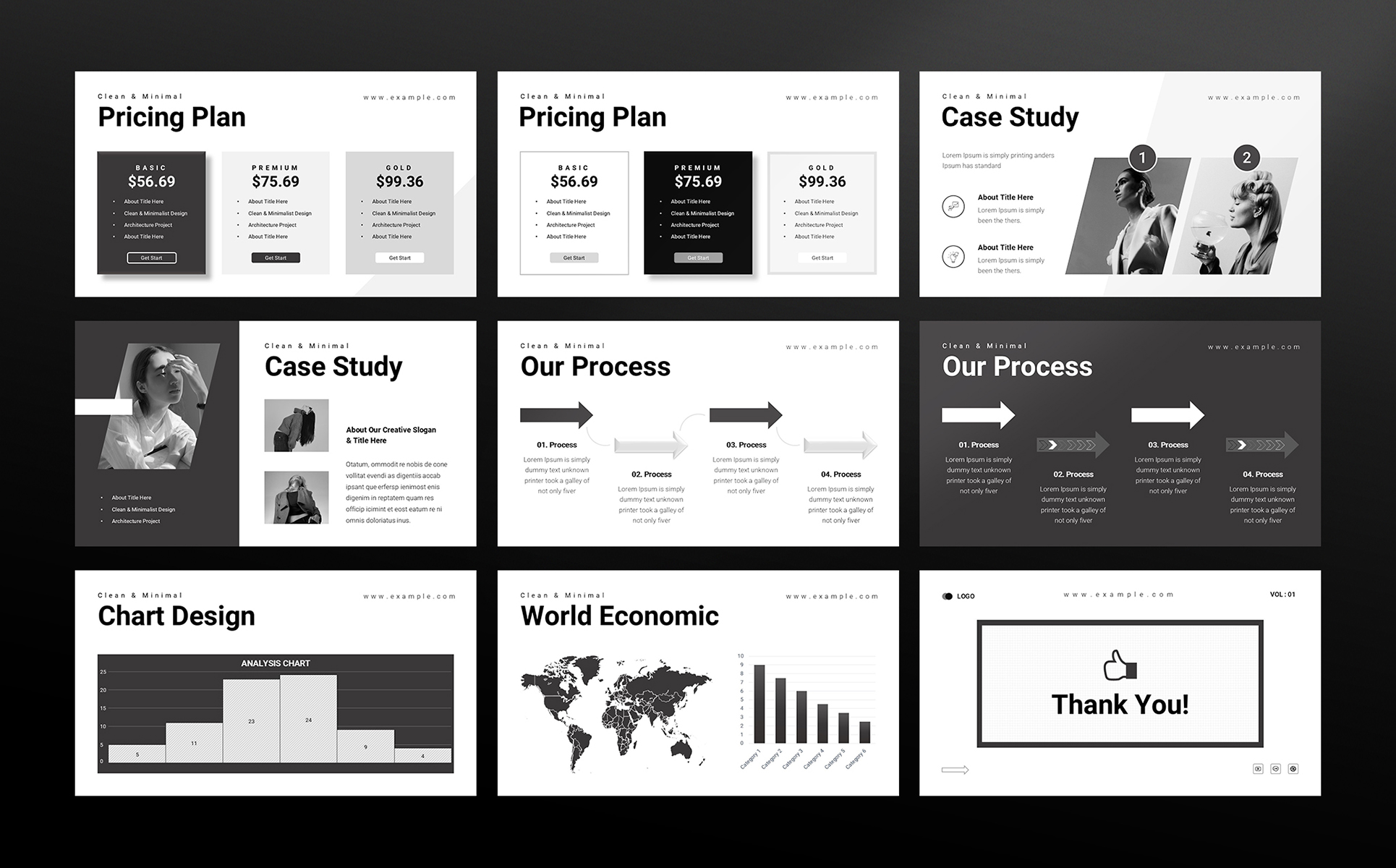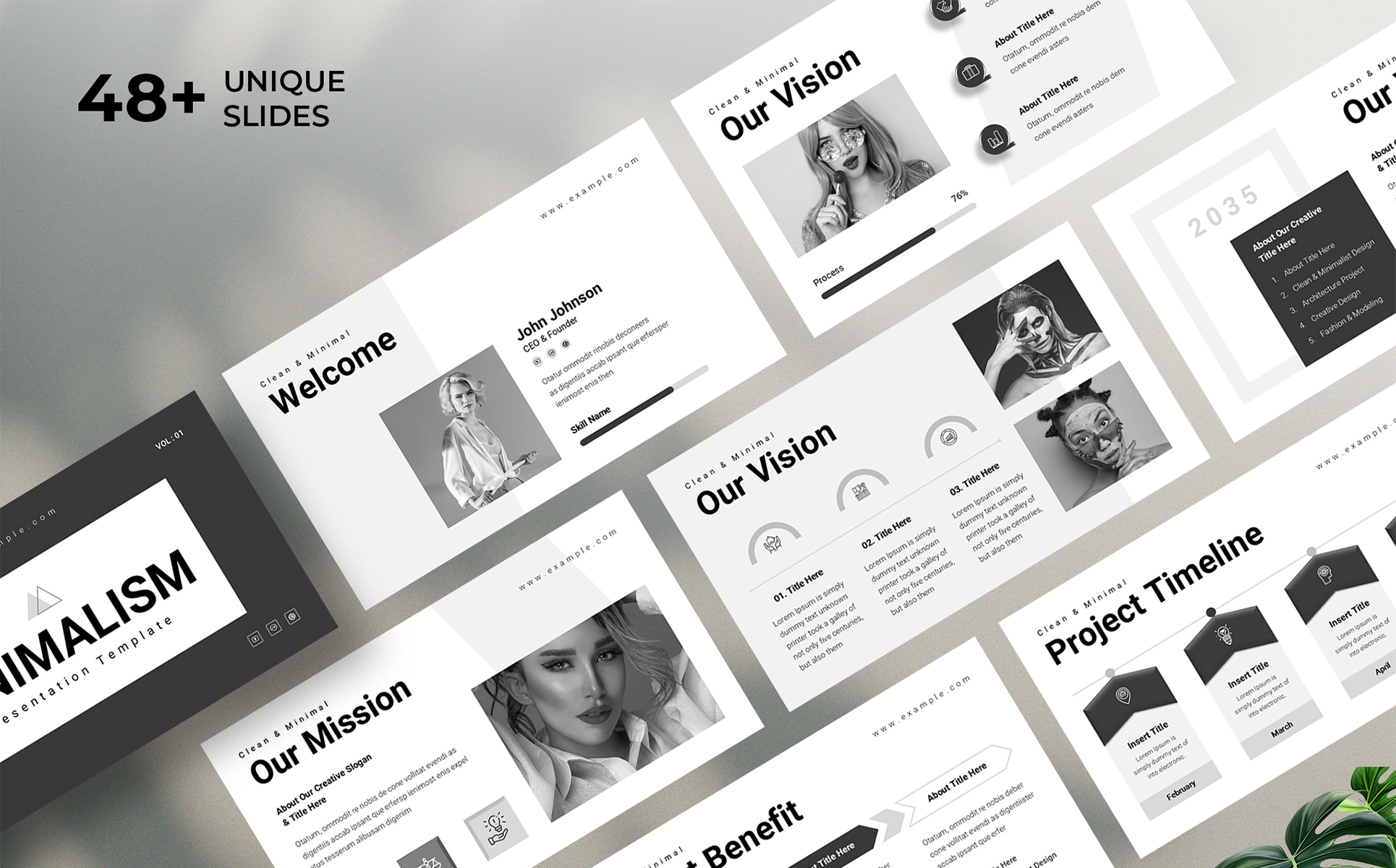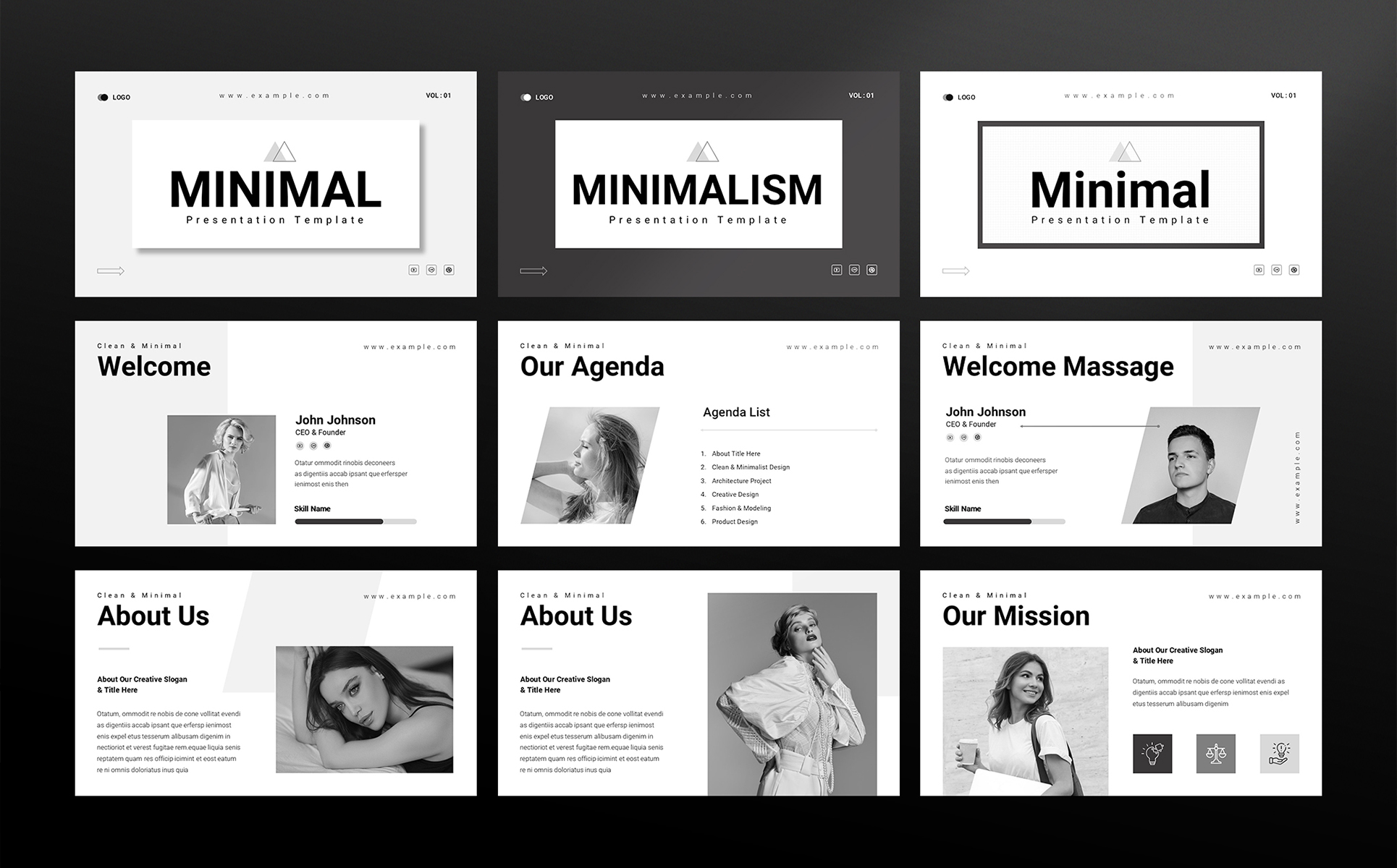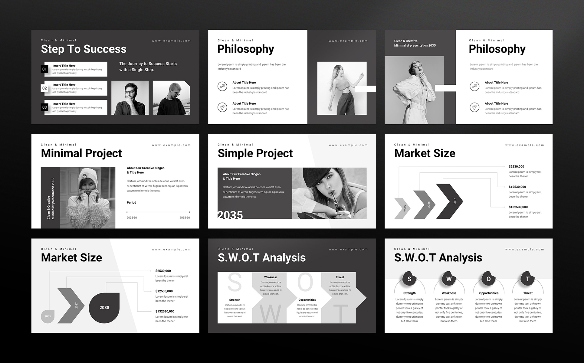 Minimal Creative Presentation Template Simple, clean, minimalist, modern, and professional presentation template. Get a modern and simple Presentation that is beautifully designed and functional. This presentation template is so versatile that it can be used in many different businesses. Perfect for any kind of Business and Marketing, design studio, designer studio, startup pitch deck, company profile, marketing kit, etc.