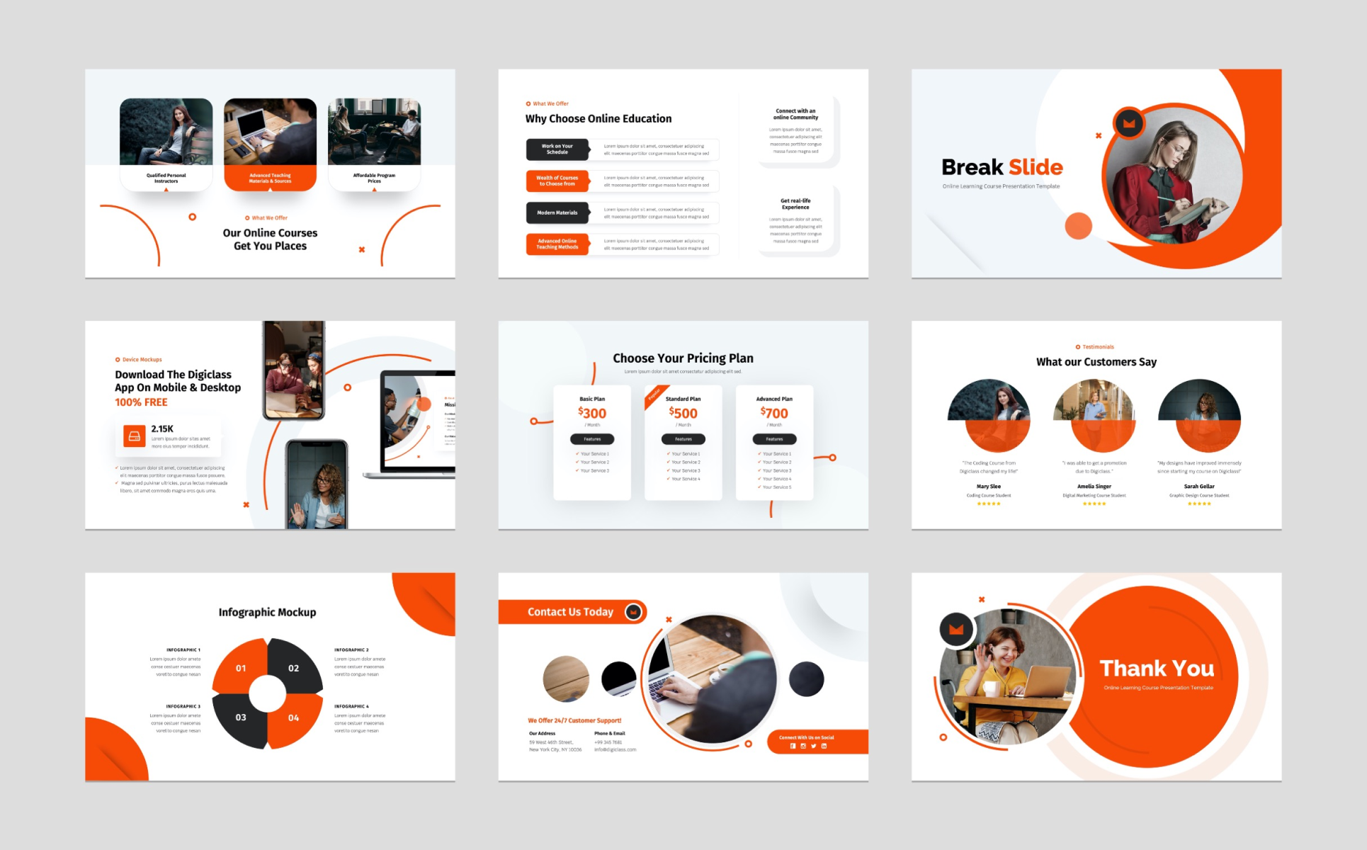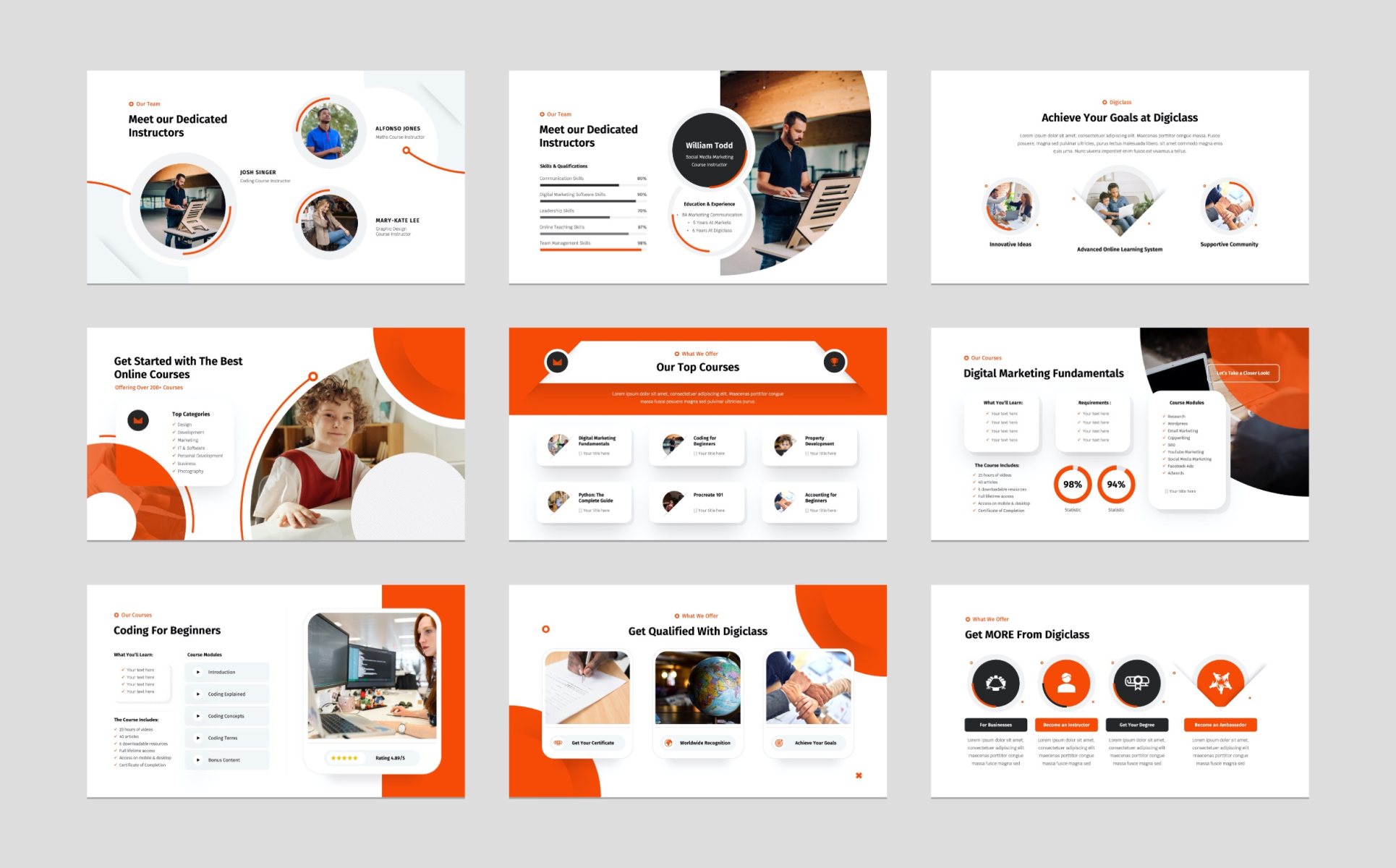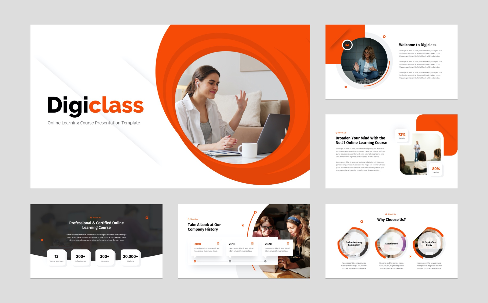 When creating the Digiclass Presentation Template, our primary focus was on businesses and individuals working in the online education industry, people creating online courses, online teachers and educators, and professionals and companies willing to share their knowledge and authority over online learning platforms. Whether you’re making a bid to an important new client or a business portfolio, this PowerPoint template will allow you to turn your information and data into a presentation quickly and efficiently.
