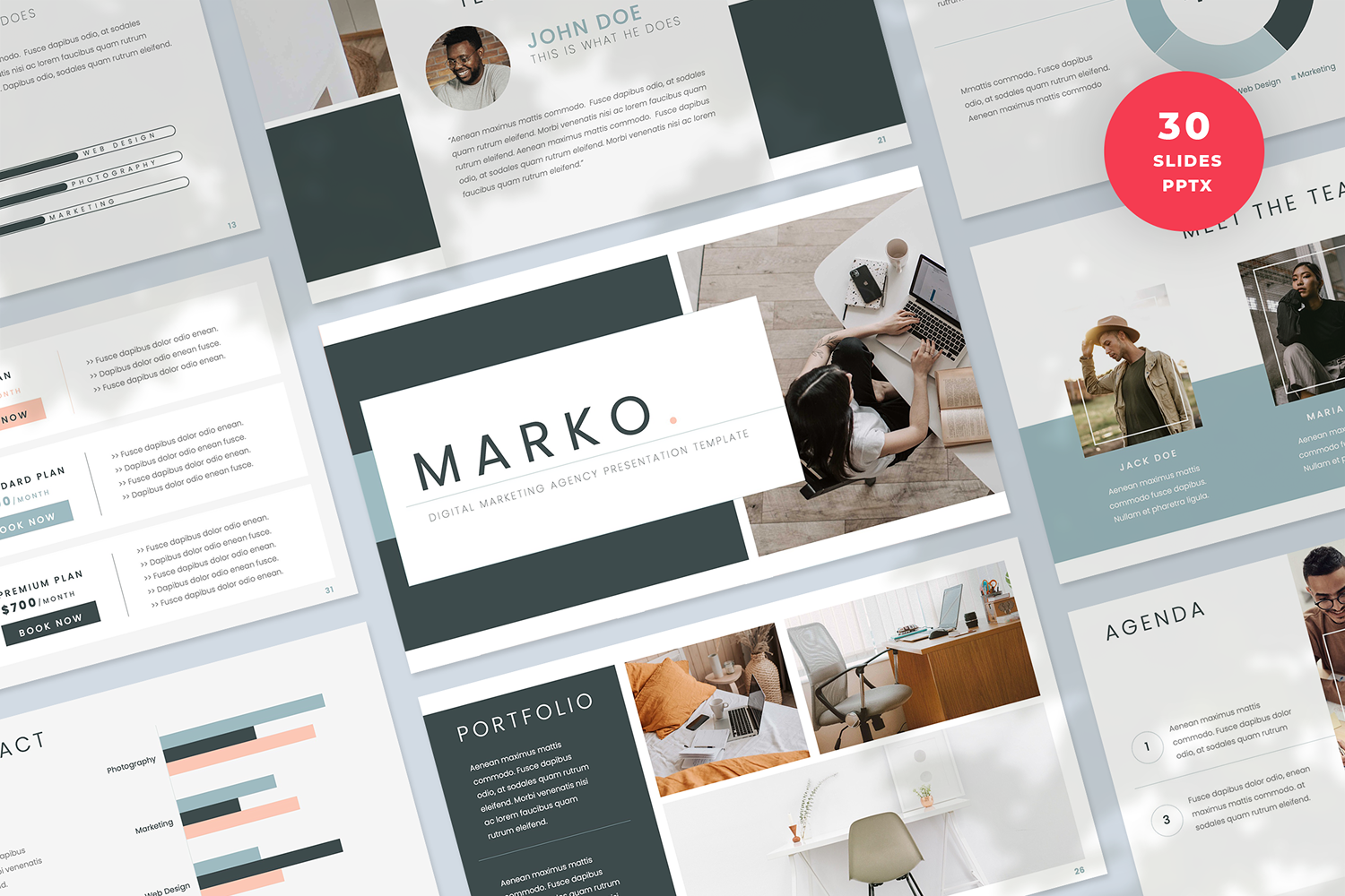 When creating the Marko Presentation Template, our primary focus was on the field marketing. Whether you’re making a bid to an important new client or a business portfolio, this PowerPoint template will allow you to turn your information and data into a beautiful presentation quickly and efficiently.