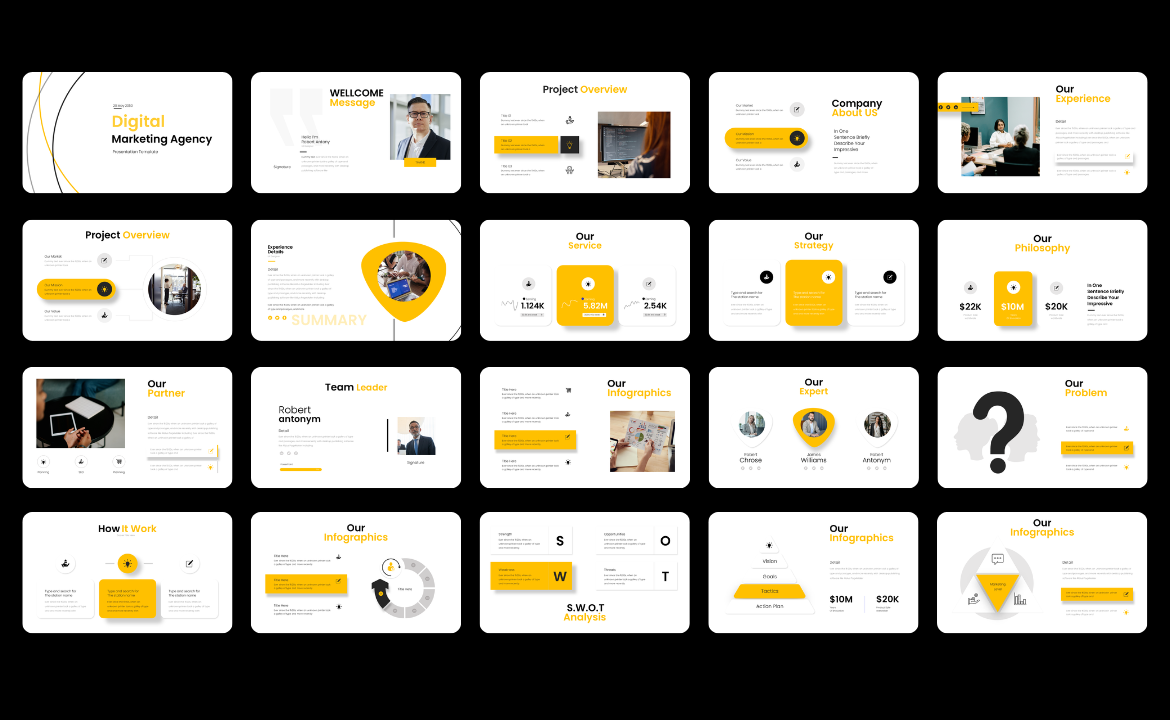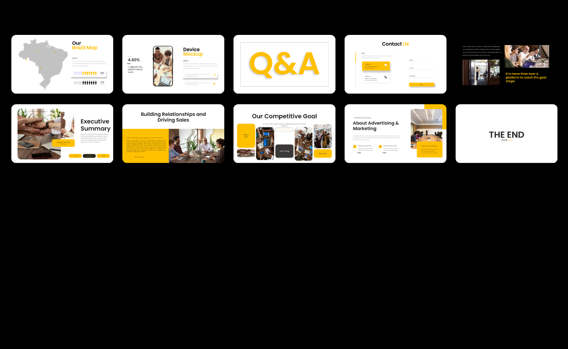 This presentation template is Ideal for agencies, freelancers, and professionals, this template offers a modern, sleek, and professional design concept, enabling you to create high-quality pitch decks in a matter of minutes. Say goodbye to the hassle of starting from scratch and focus your valuable time and attention on crafting compelling content, while the engaging visual style is ready-made for you.
