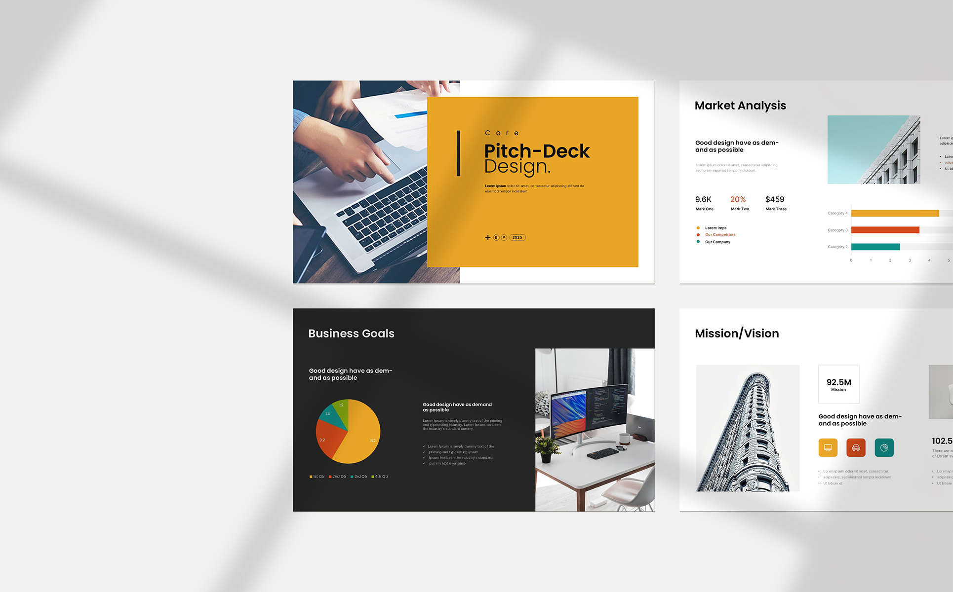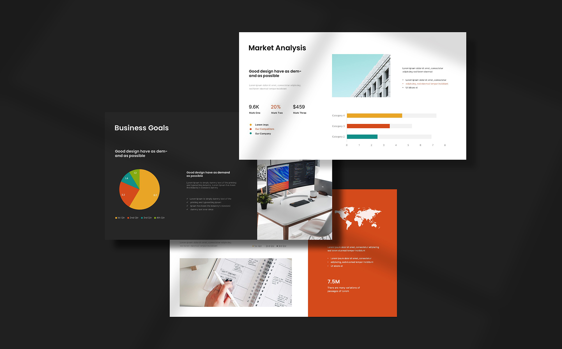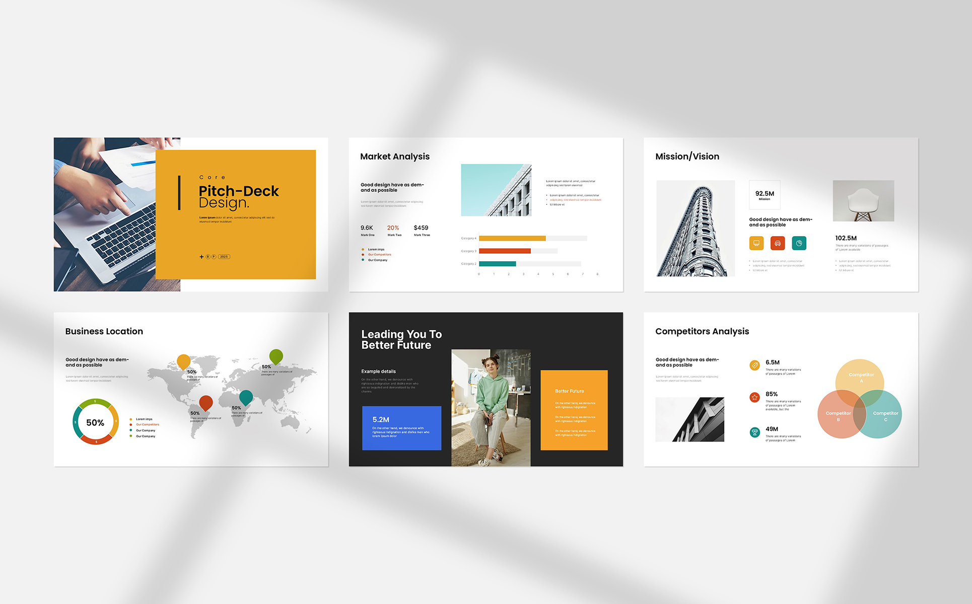 Export and send to clients as a pdf,pptx. It is easy to replace typography and brand colors with your own.