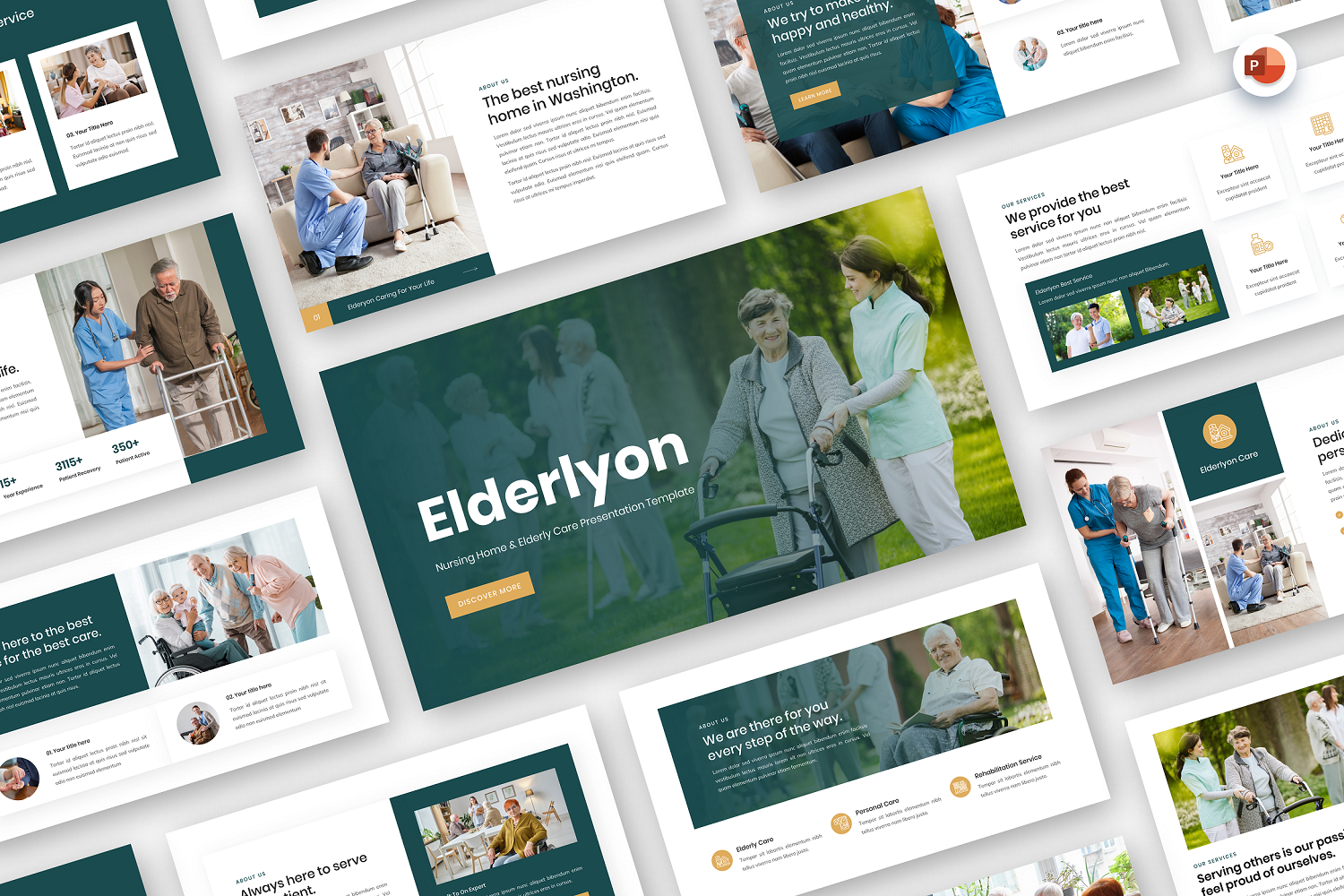 Introducing **Elderlyon - Nursing Home & Elderly Care PowerPoint Template**