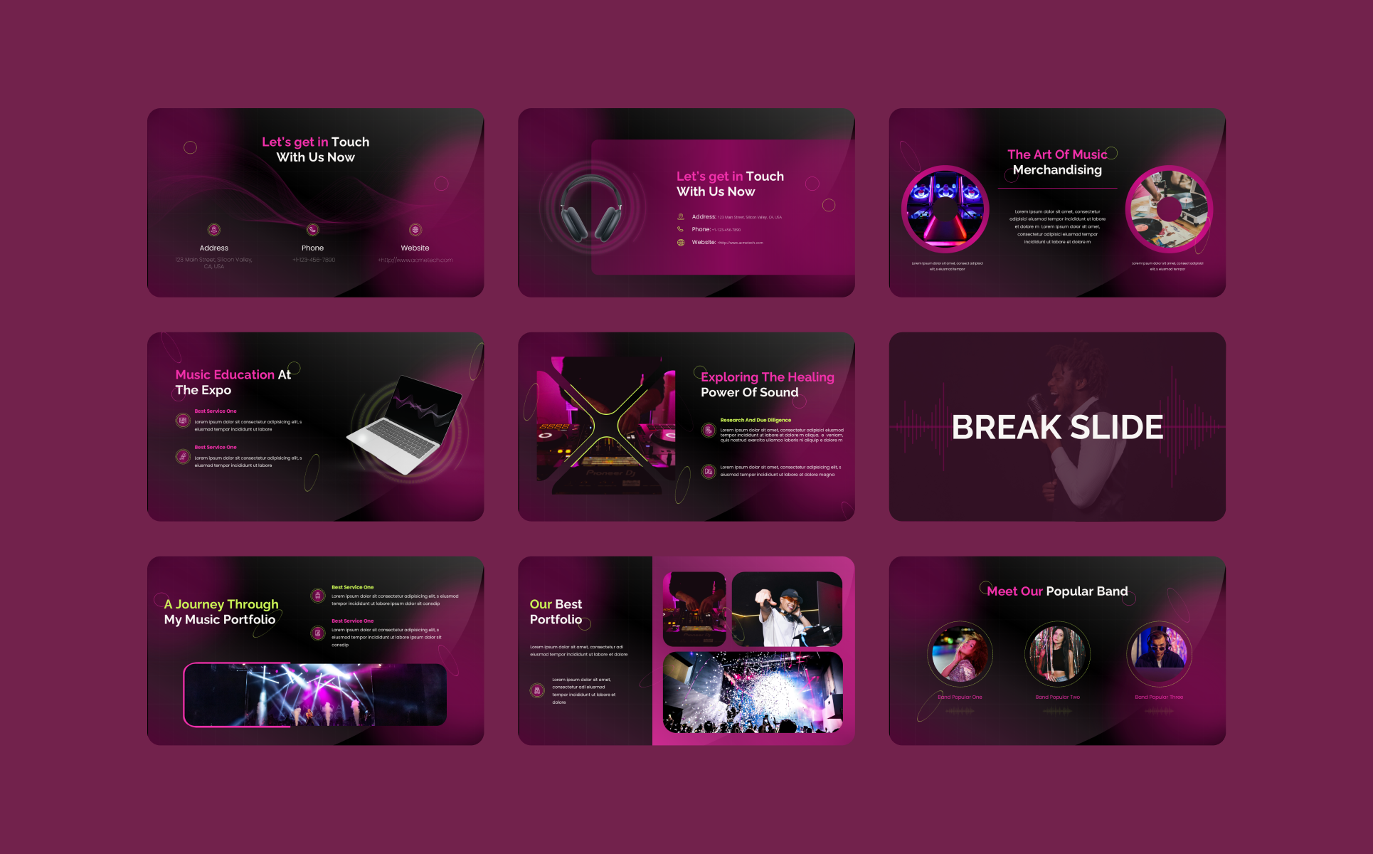 Get in Touch | Music Education Expo | Healing Power of Sound | Break Slide | Meet Our Band | My Music Portfolio | Best Portfolio | Seamless Expo Experience | Service Excellence Expo | Instruments & Gear Expo | Music Production Insights | Live Performance Innovations | Music Tech Showcase | World of Music Expo | Thank You