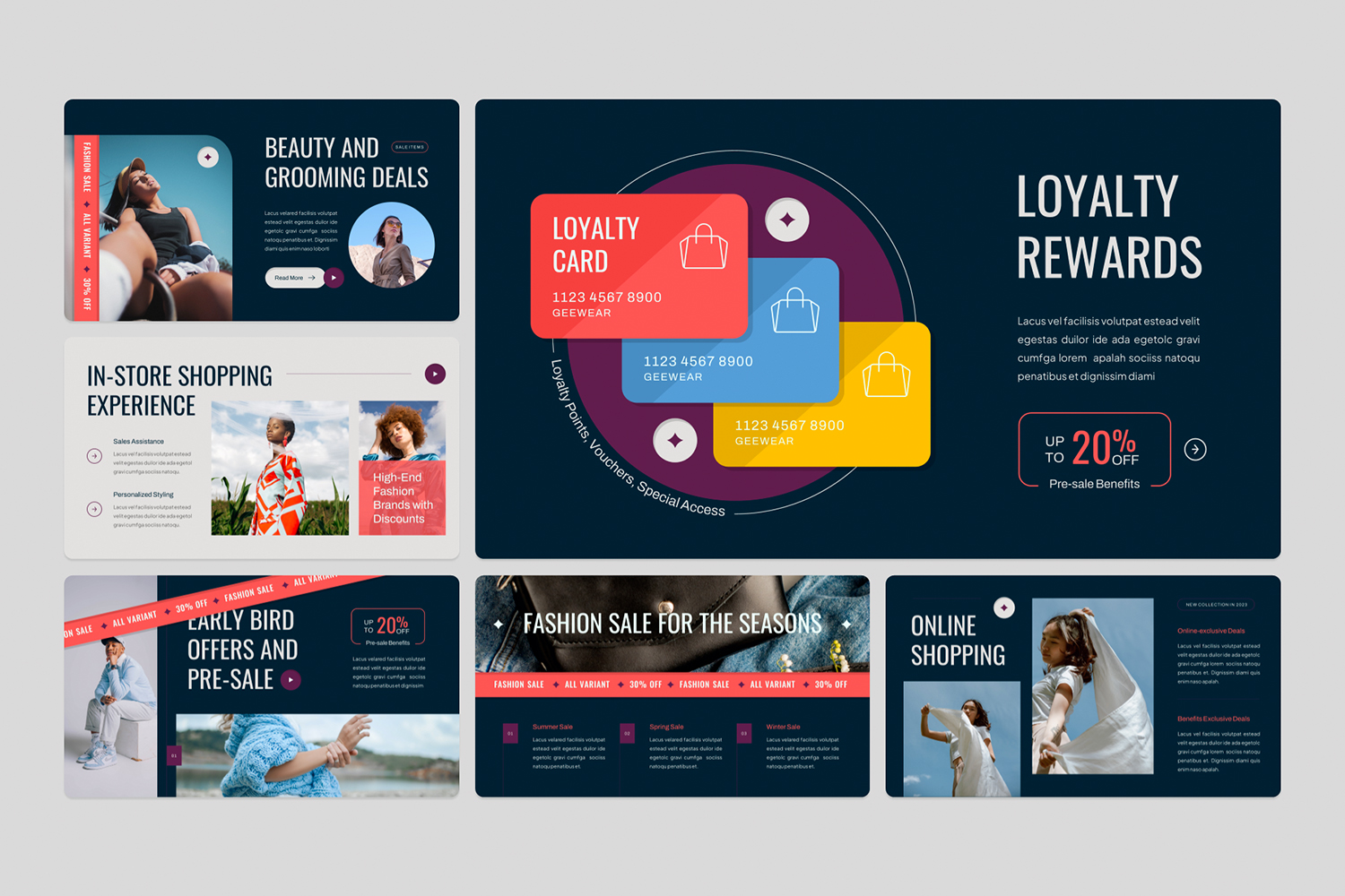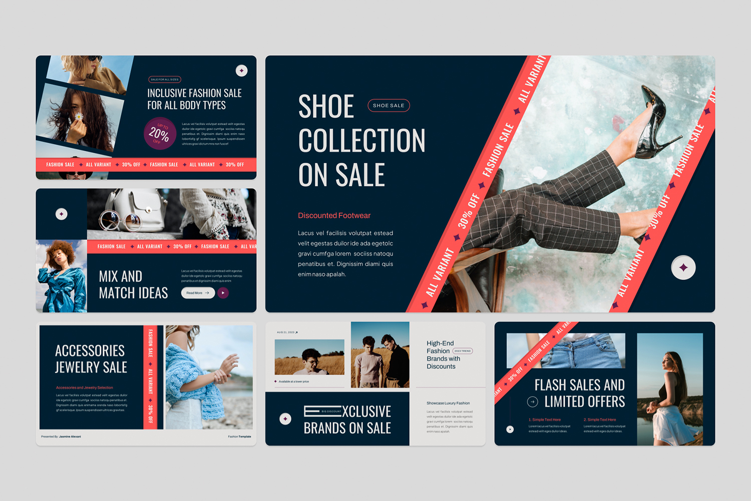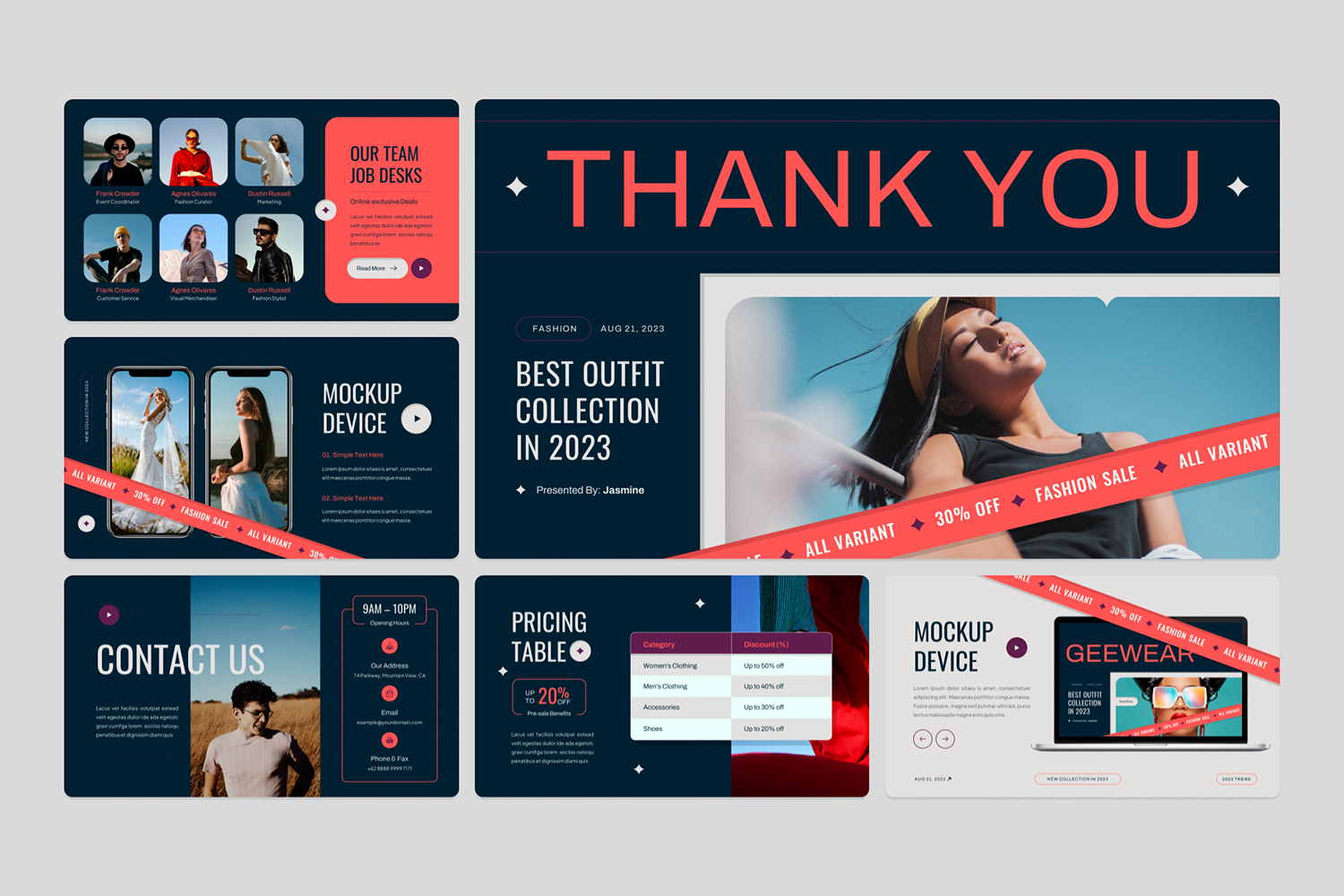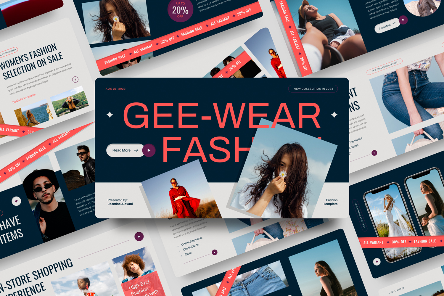 Geewear - Fashion Sale PowerPoint Template combines modern design with professional layouts for a truly captivating presentation. Showcase your designs with ease using its elegant, creative and unique features. Impress your audience with stunning visuals and dynamic.