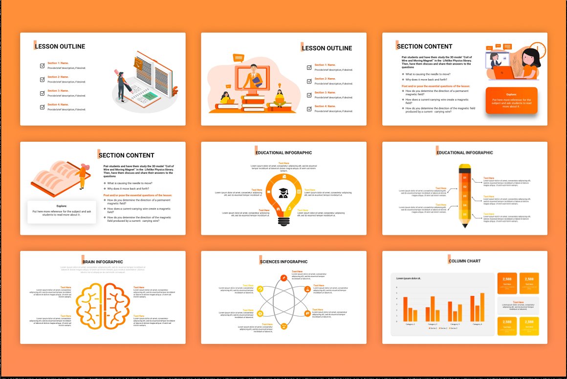 A modern and professional outlays were the focus of this general lesson ppt template. That’s why the users of this ppt will find a wide range of options to inspire them and help in creating the needed form of content saving both the time and effort of the educator.