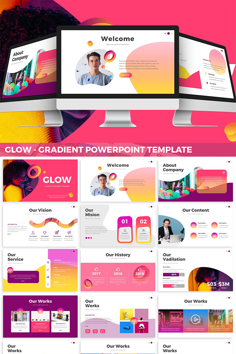 This is a Gradient & Abstract Theme Presentation for Powerpoint, you can use it for Creative Agency, Media, Pitchdeck, etc., All elements are editable from a shape to colors no need another software to edit it, just use a Powerpoint.
