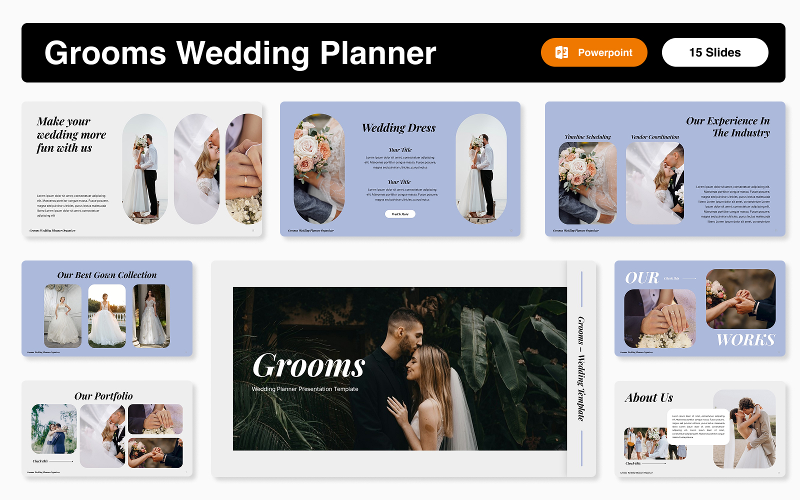 Celebrate your special day with the Groom’s Wedding Planner PowerPoint Template — an elegant, modern, and fully customizable presentation designed for wedding planning and event proposals. Perfect for grooms, couples, wedding planners, and event coordinators, this template helps you organize ideas, timelines, and proposals with style and sophistication.