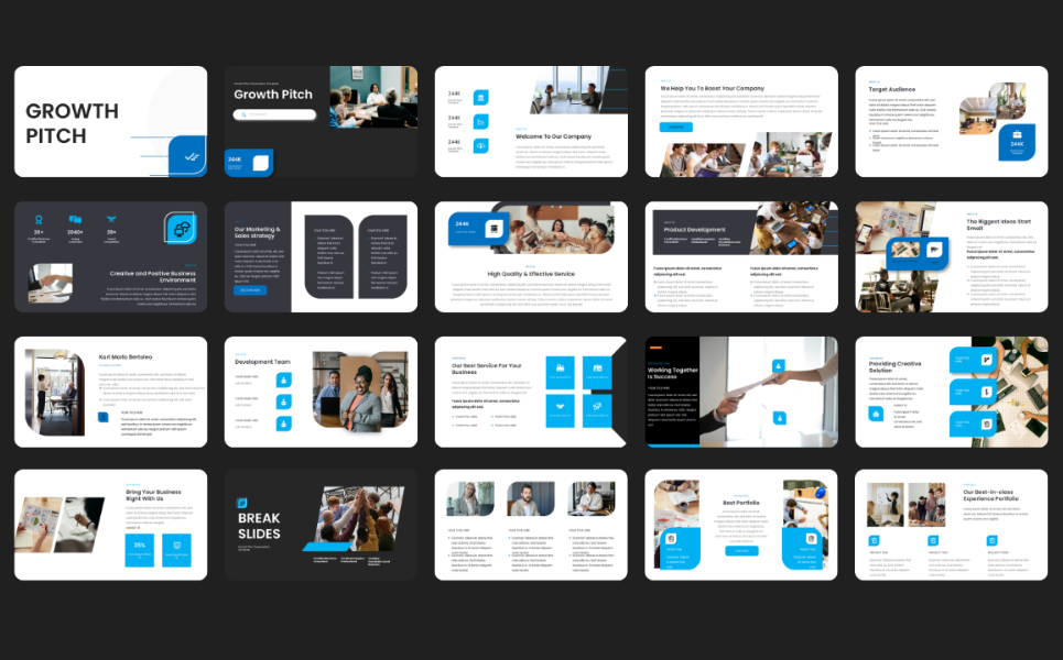 This presentation template is Ideal for agencies, freelancers, and professionals, this template offers a modern, sleek, and professional design concept, enabling you to create high-quality pitch decks in a matter of minutes. Say goodbye to the hassle of starting from scratch and focus your valuable time and attention on crafting compelling content, while the engaging visual style is ready-made for you.