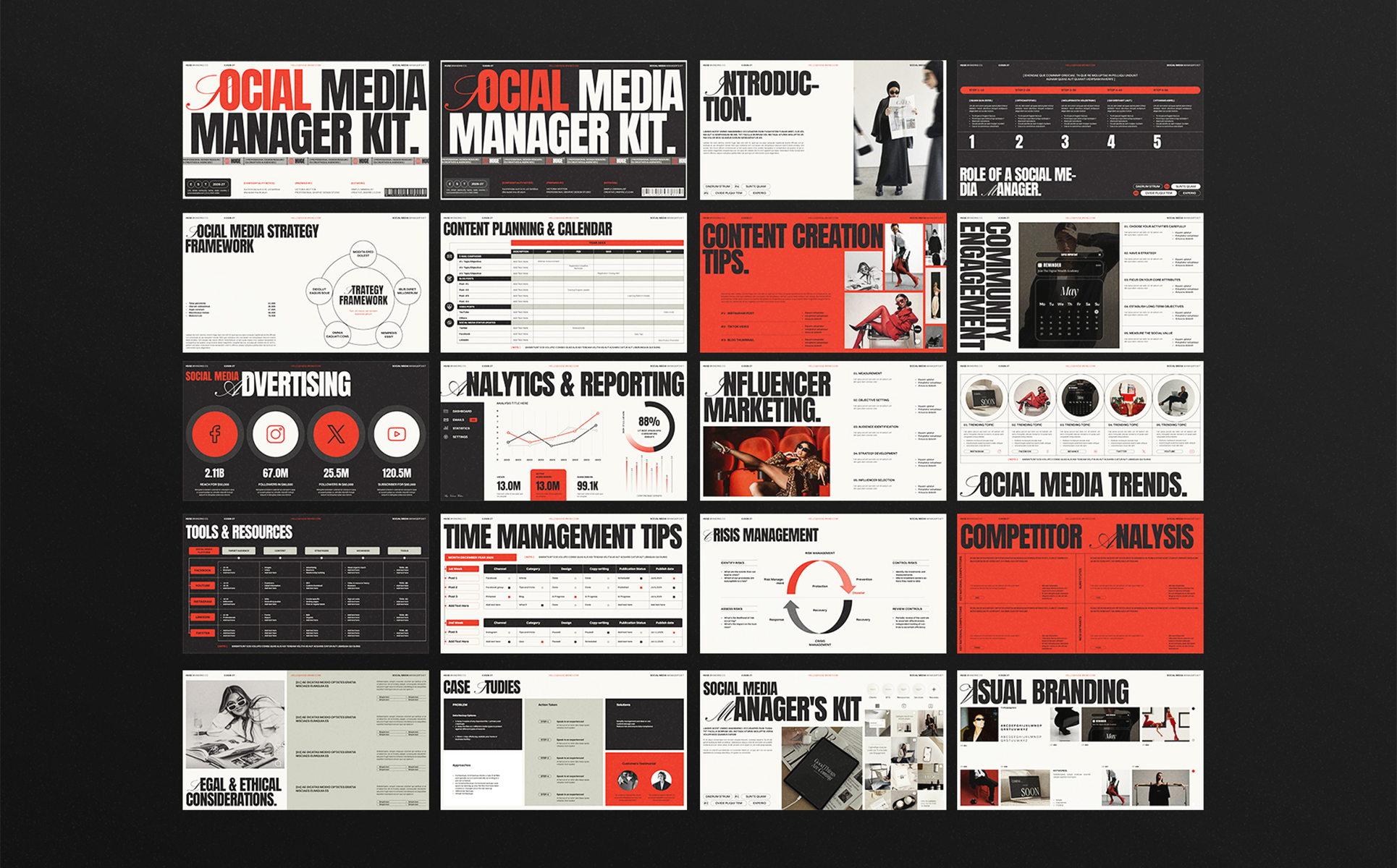 A Social Media Manager's Kit is a collection of tools, templates, and resources designed to help social media managers streamline their workflow, plan content, and manage campaigns effectively. It typically includes: