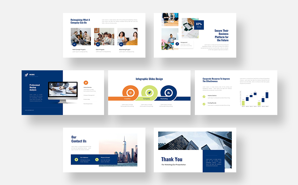 Company Profile | Business Overview | Corporate Presentation | Pitch Deck | Marketing Plan | Sales Presentation | Annual Report | Team Introduction | Agency Profile | Project Proposal