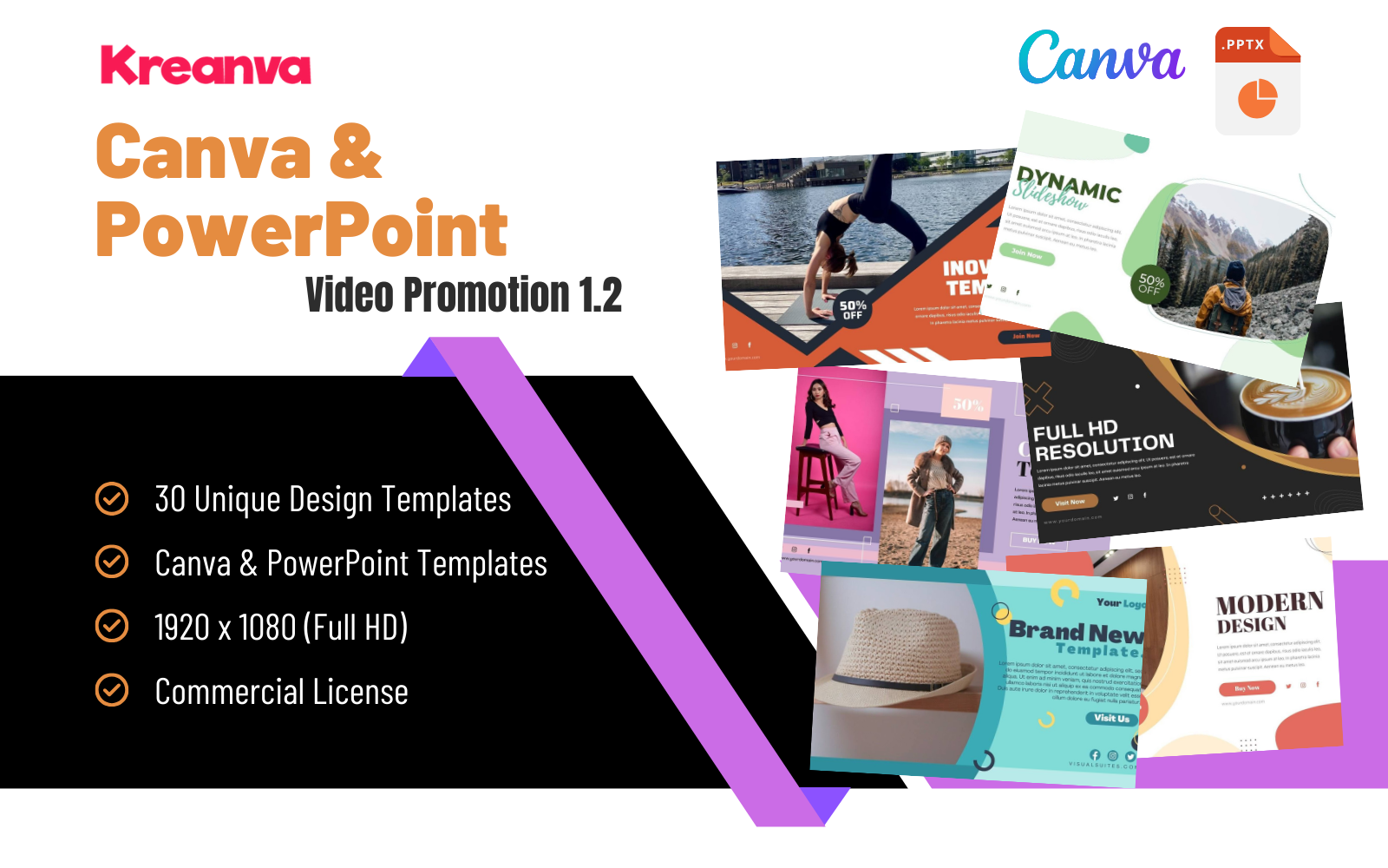 Introducing our Ultimate Video Promotion Template Pack—a game-changing collection of 30 professionally designed templates, fully compatible with both Canva (Free Version!) and PowerPoint.