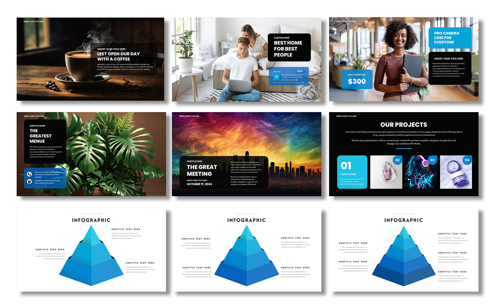 Present your works professionally and cleanly with the Perfect Plan Presentation Template. This is a simple, contemporary but powerful design that includes creative photo layouts, infographics, tables, vector icons, diagrams and tons of great features to show your work and your company profile on another level.