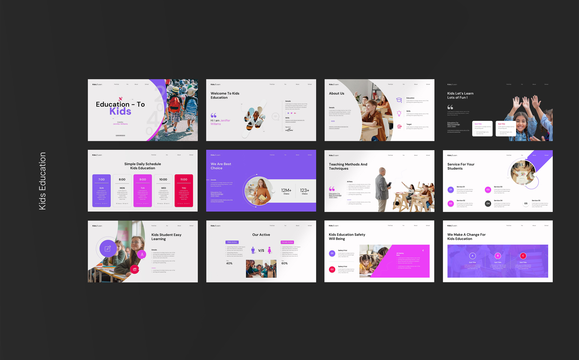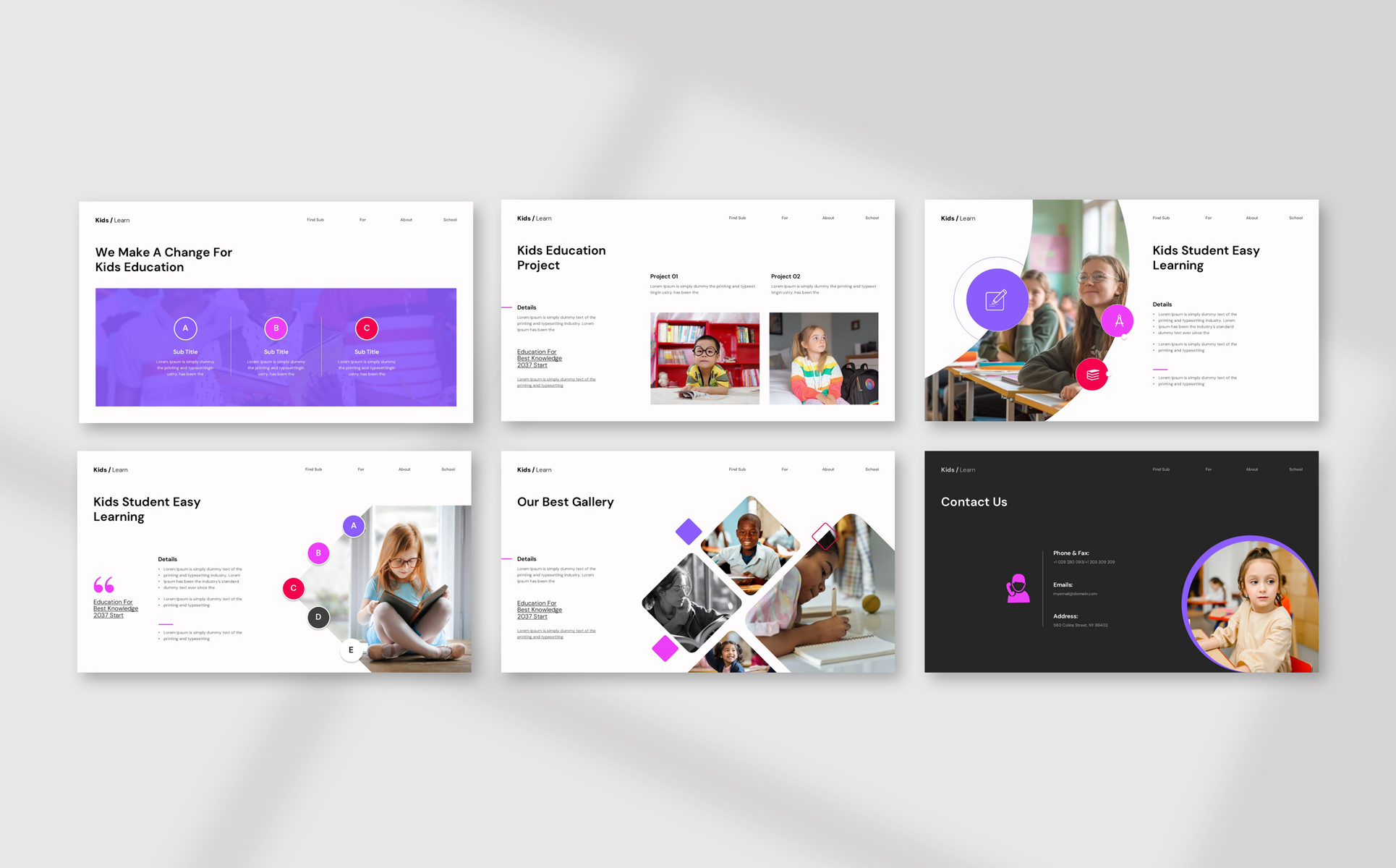 Kids Education Presentation Template allows you to simply add your logo, and images and edit your brand colors and typography and you’re good to go. Please don’t waste your time, we’ve done all the hard work for you.
