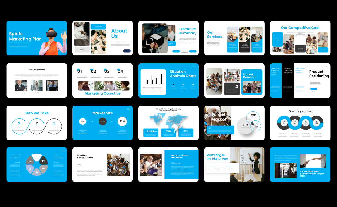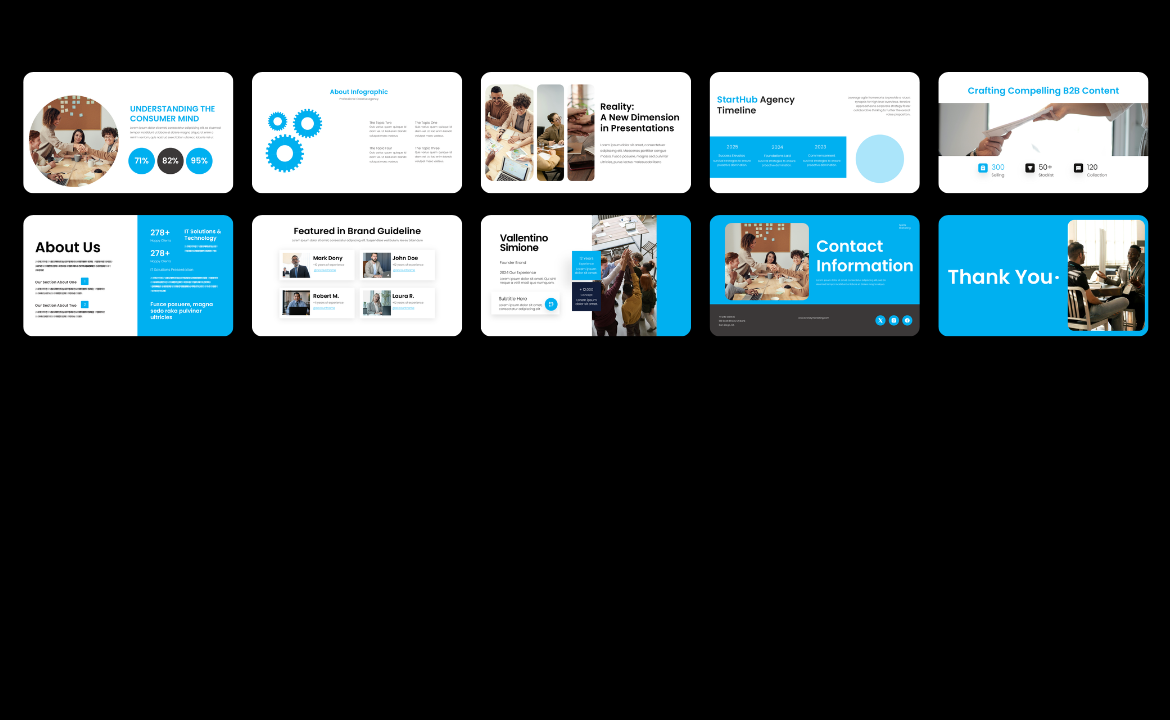 This presentation template is Ideal for agencies, freelancers, and professionals, this template offers a modern, sleek, and professional design concept, enabling you to create high-quality pitch decks in a matter of minutes. Say goodbye to the hassle of starting from scratch and focus your valuable time and attention on crafting compelling content, while the engaging visual style is ready-made for you.