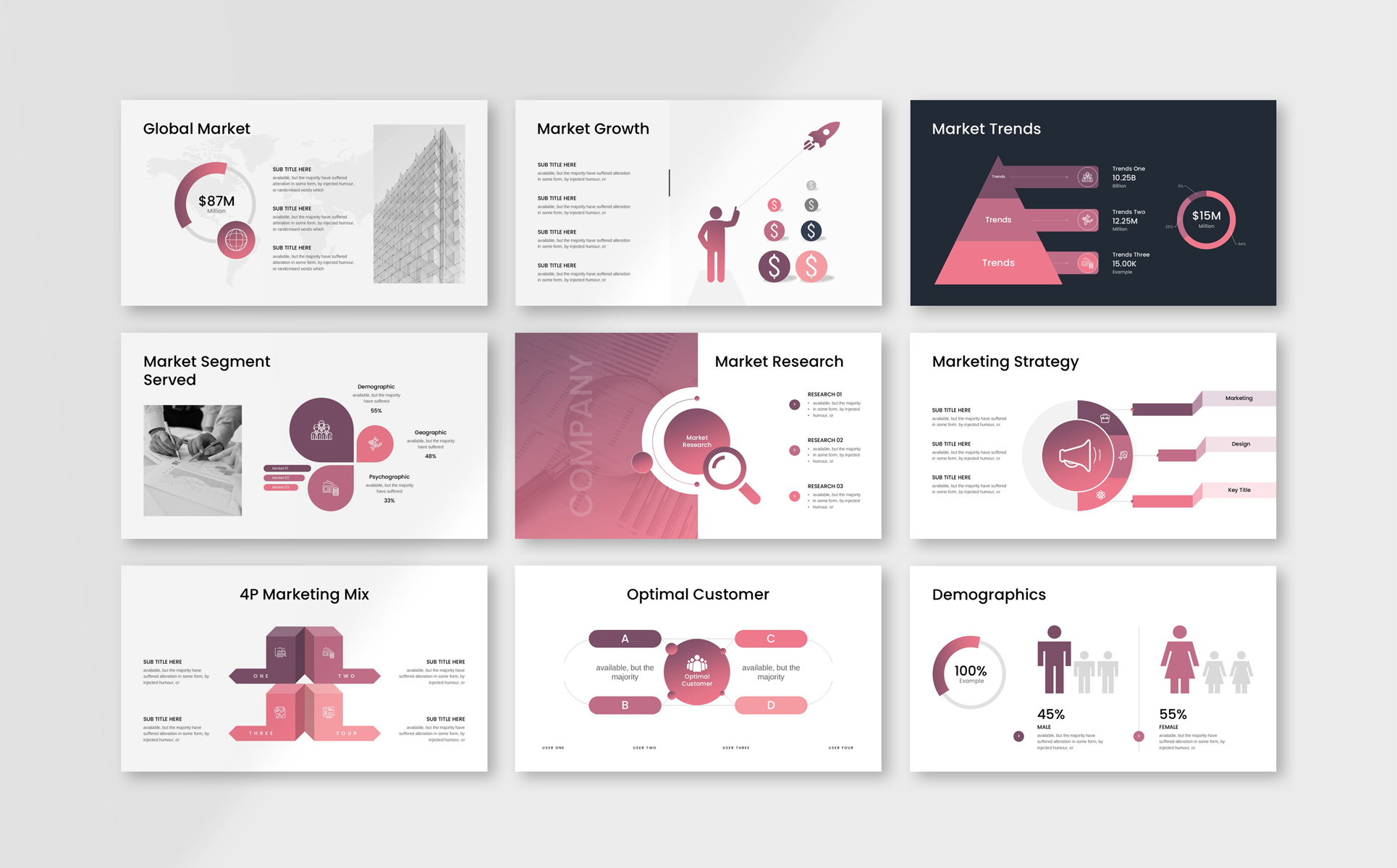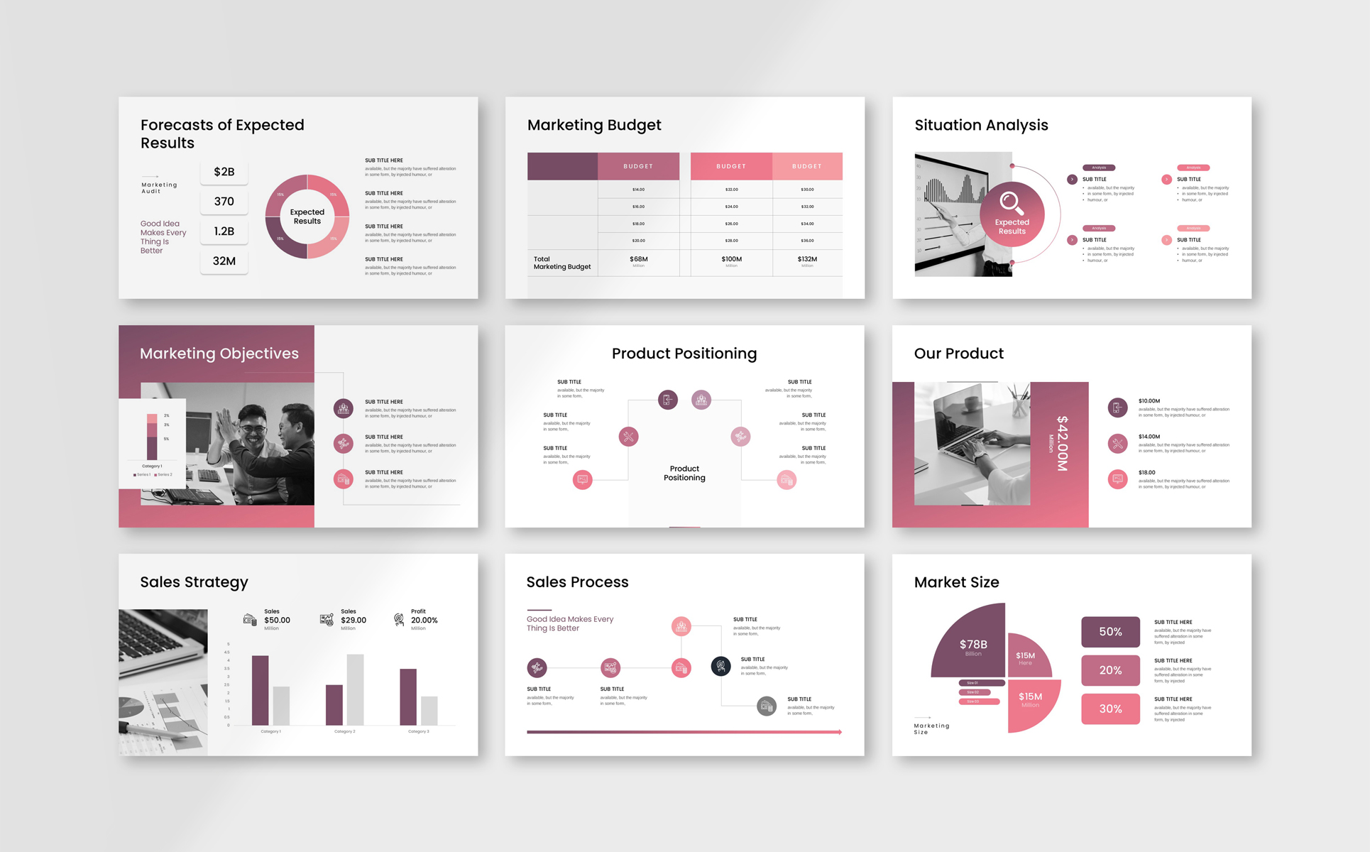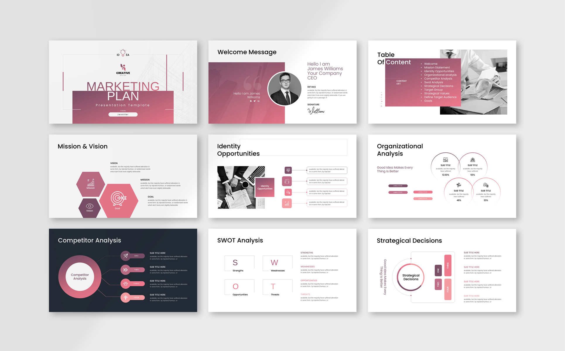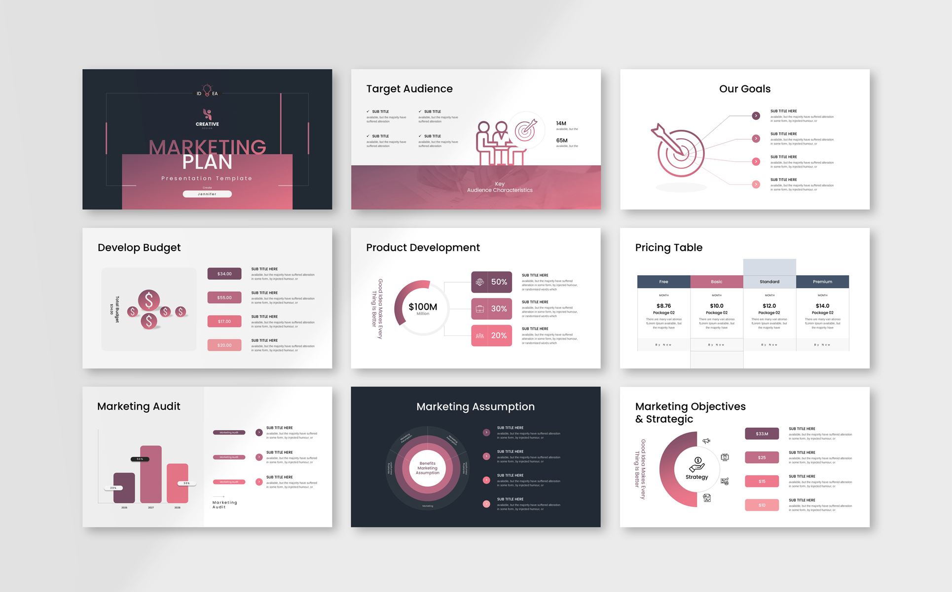 Marketing Plan Presentation Template allows you to simply add your logo, images, and edit your brand colors and typography, and you’re good to go. Don’t waste your time, we’ve done all the hard work for you.