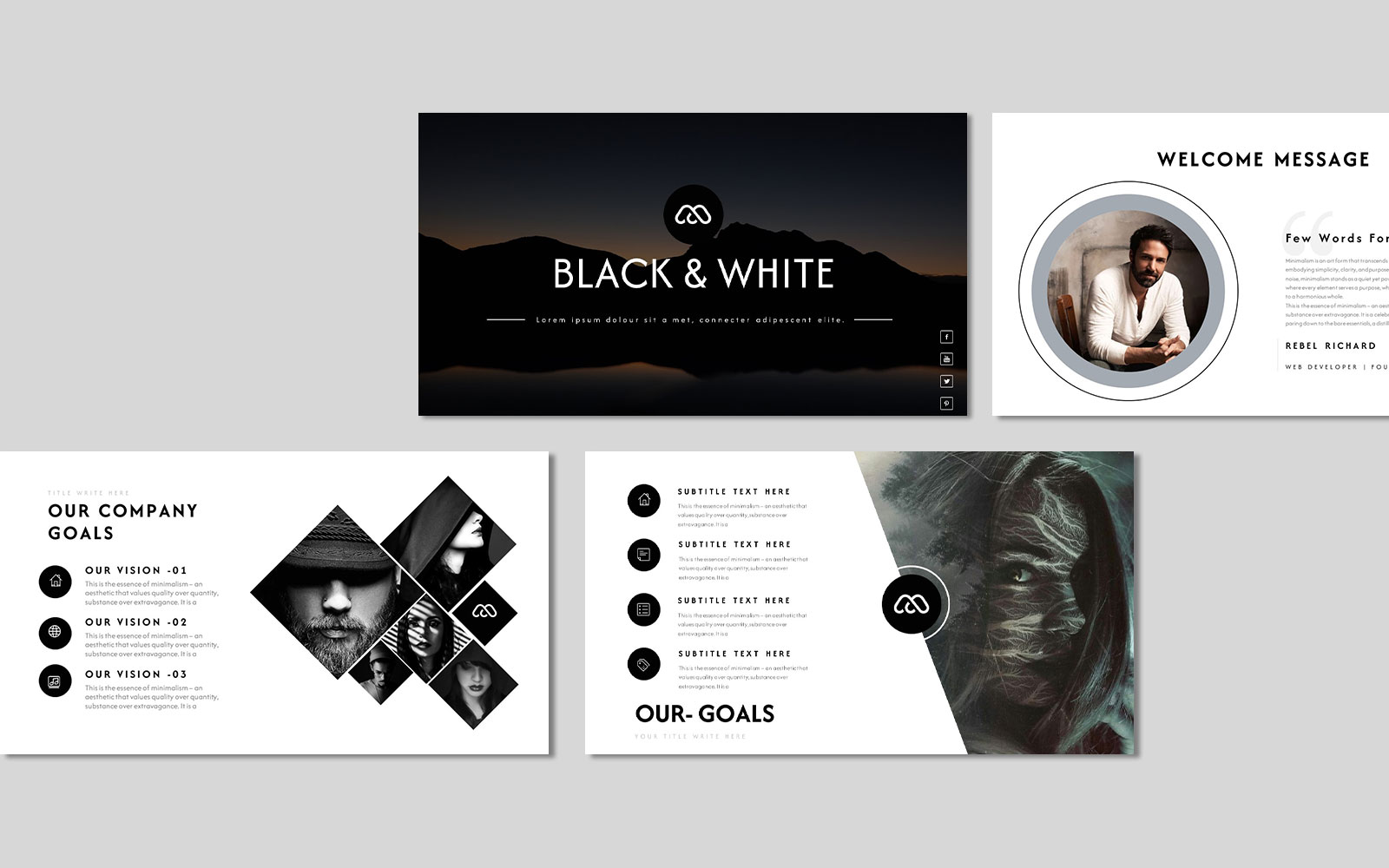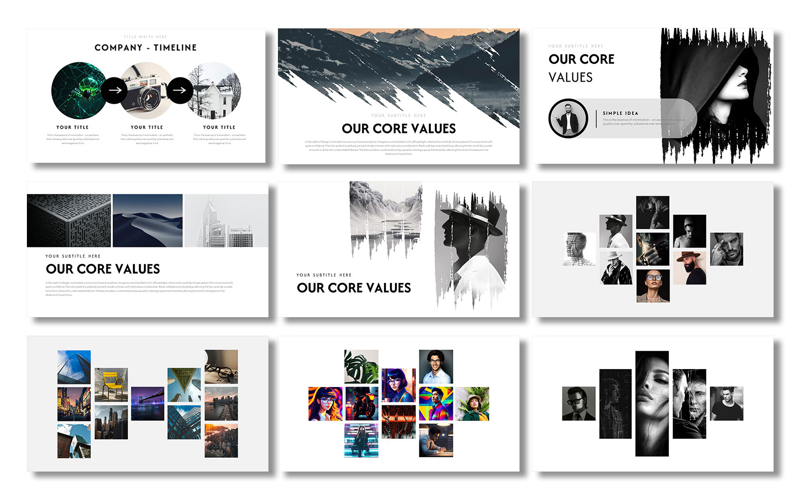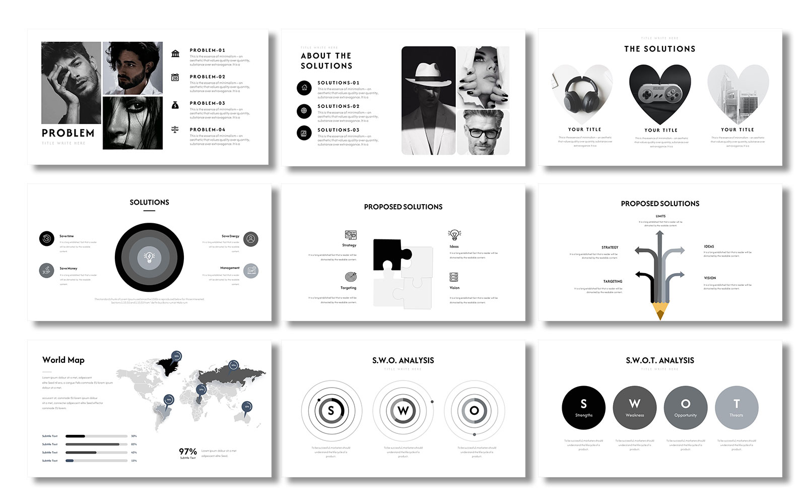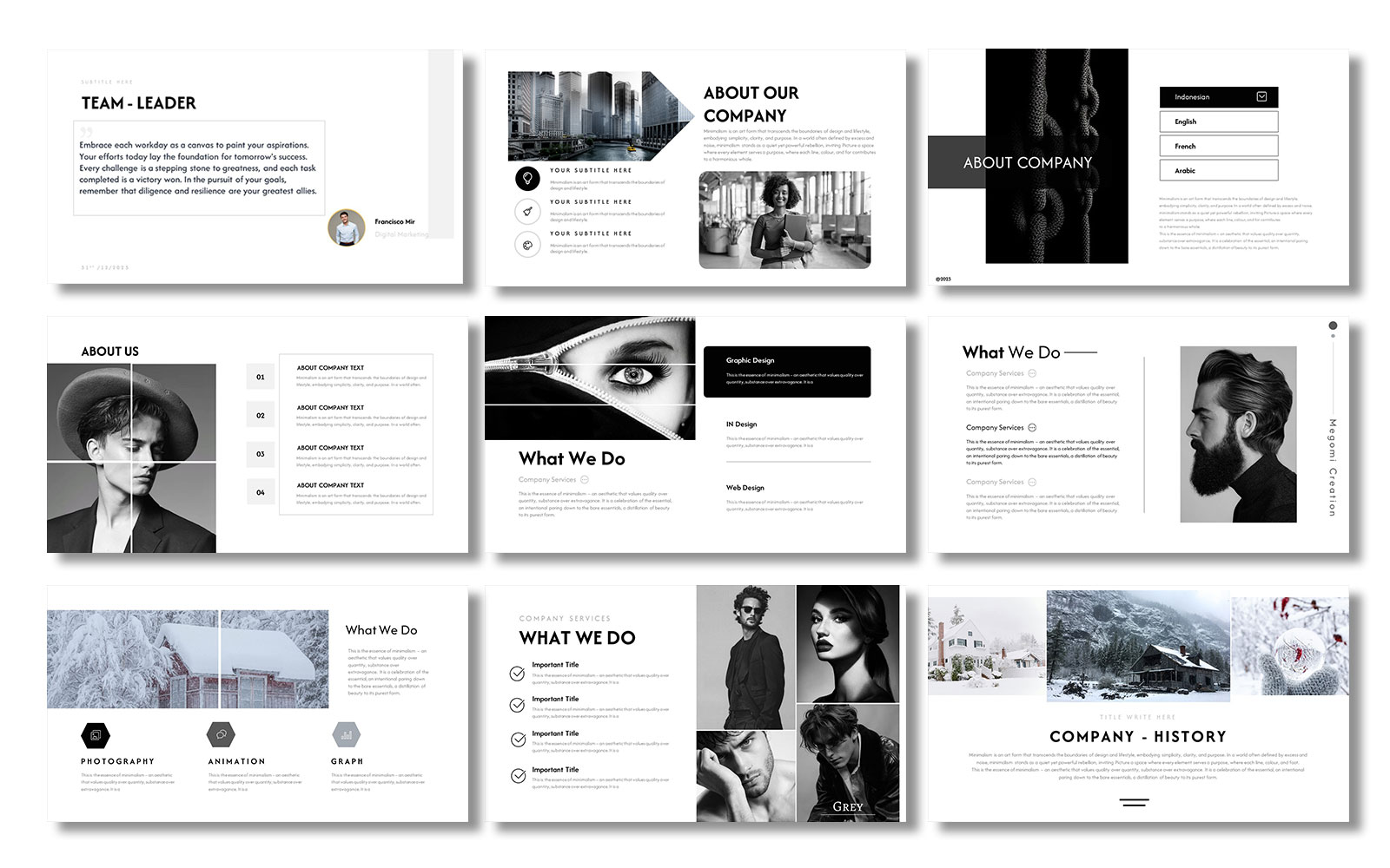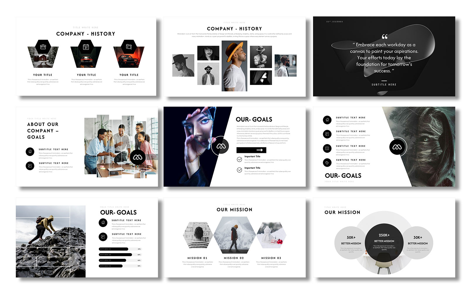 Megomi Minimal Powerpoint Presentation Template Get a modern PowerPoint presentation that is beautifully designed and functional. This slides comes with infographic elements, charts graphs and icons. This presentation template is so versatile that it can be used in many different businesses. This PowerPoint can be used for real estate market review, new business funding request, product reviews, marketing and promotions post launch review, market research, social media impact studies, education and training. With this many slides you are able to make a complete PowerPoint presentation (deck) that best suit your needs.