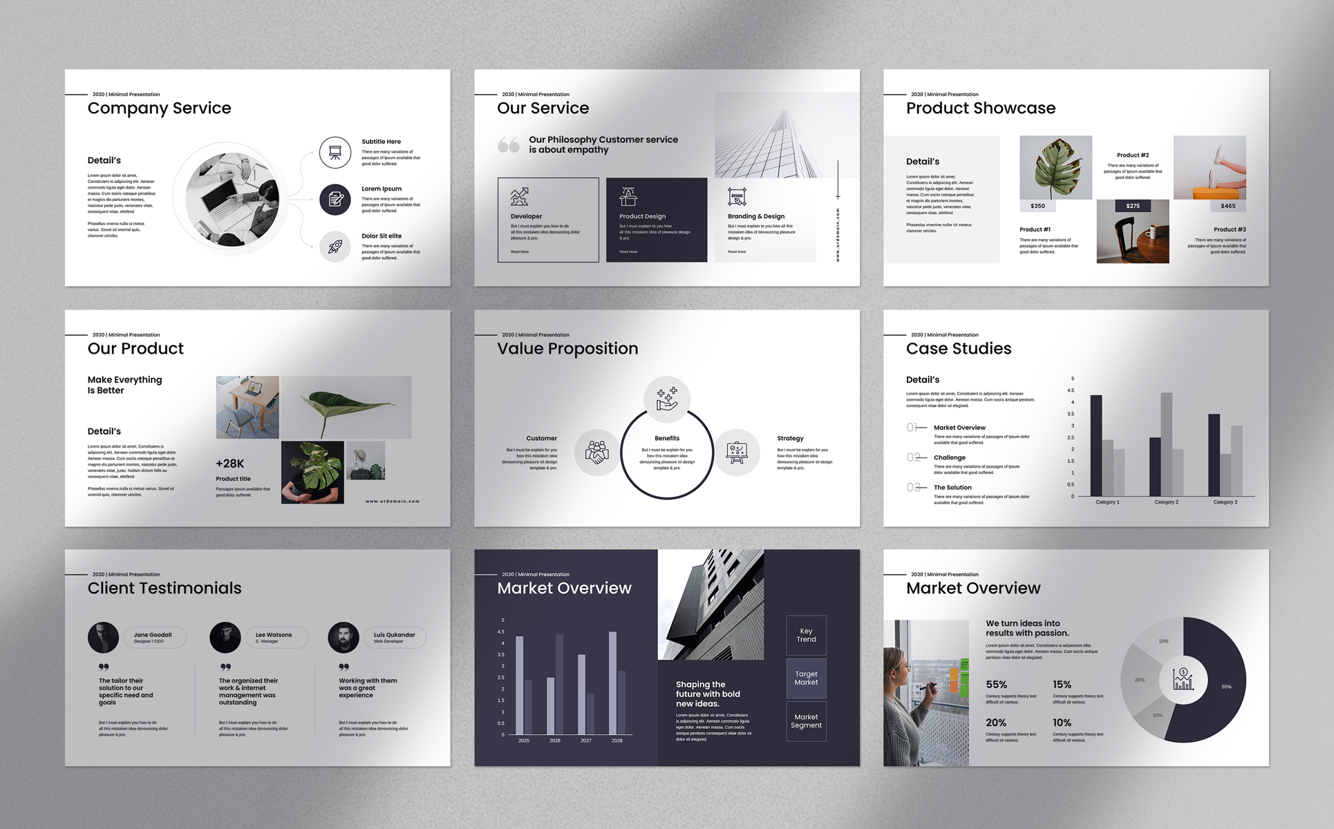 The Minimal Presentation Template is designed for professionals who value clarity, elegance, and impactful storytelling without unnecessary visual clutter. Built around a clean aesthetic, This Minimal Presentation Template uses generous white space, balanced typography, and subtle color accents to keep attention focused on your message. Each slide is carefully structured to highlight key ideas with simplicity—perfect for business proposals, company profiles, reports, workshops, and academic presentations.