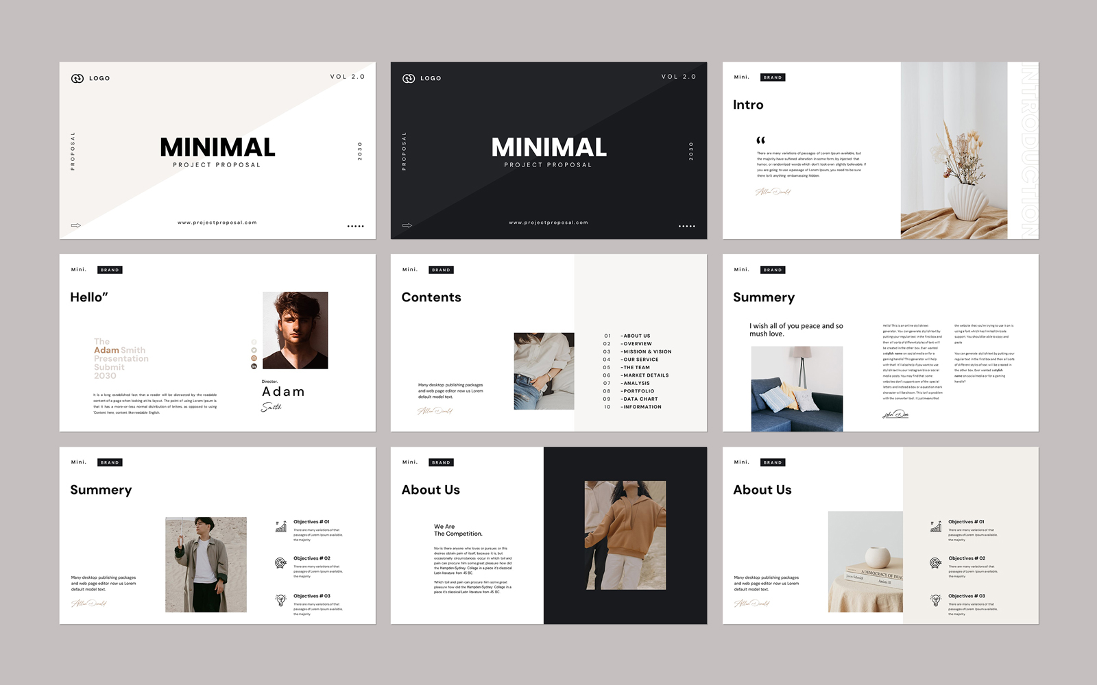 Present your works in a professional and clean way with Minimal Project Proposal Template. This is a simple contemporary but powerful design that includes creative photo layouts, infographics, tables, vector icons, diagrams and tons of great features to show your work and your company profile on another level.